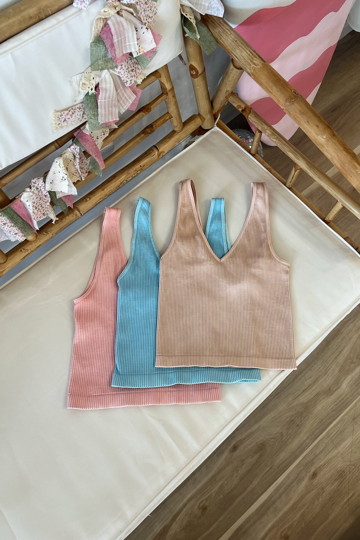 Vintage ribbed knit top with a V-neckline and cropped silhouette.