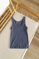 Ribbed knit top with a reversible scoop or crew neckline