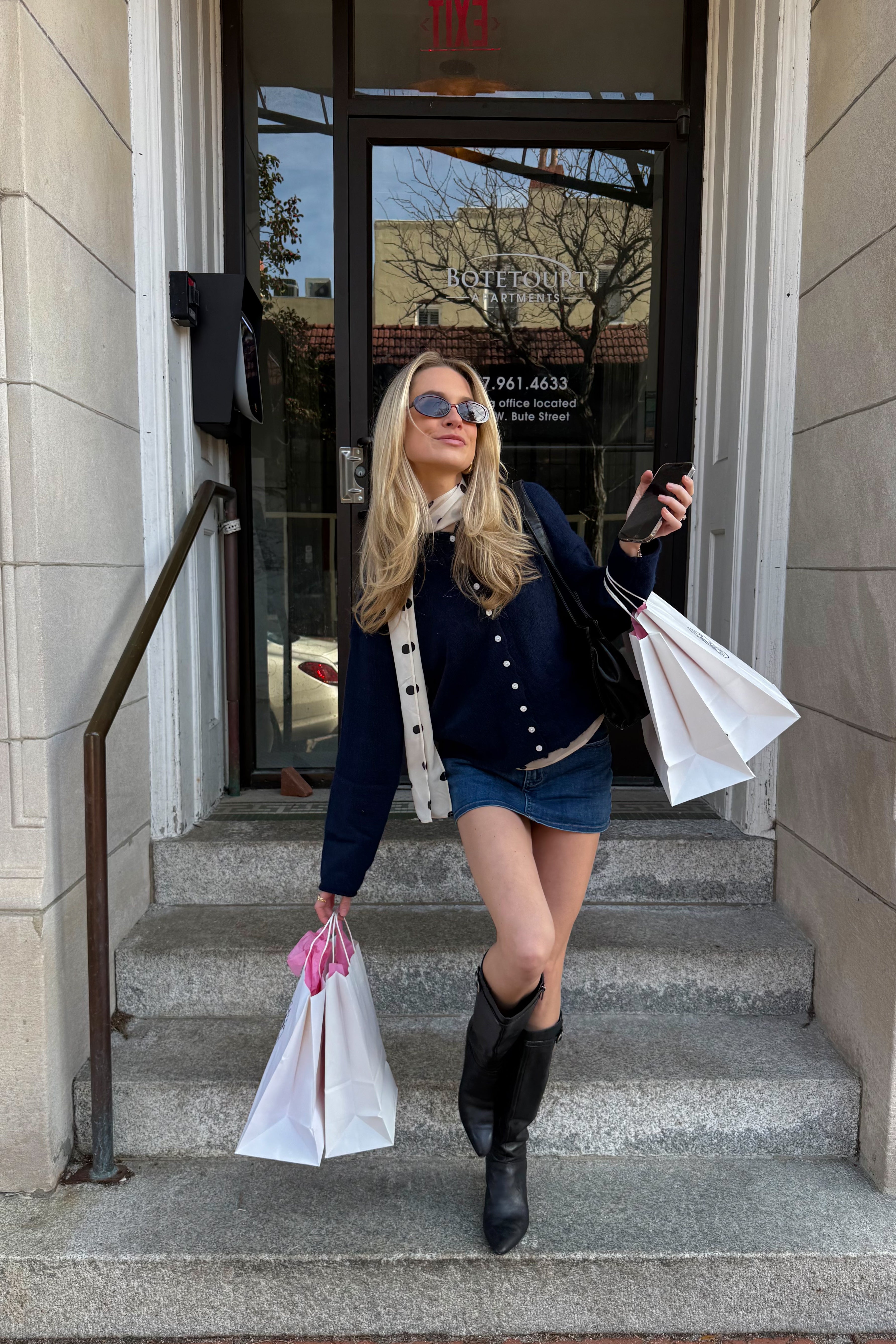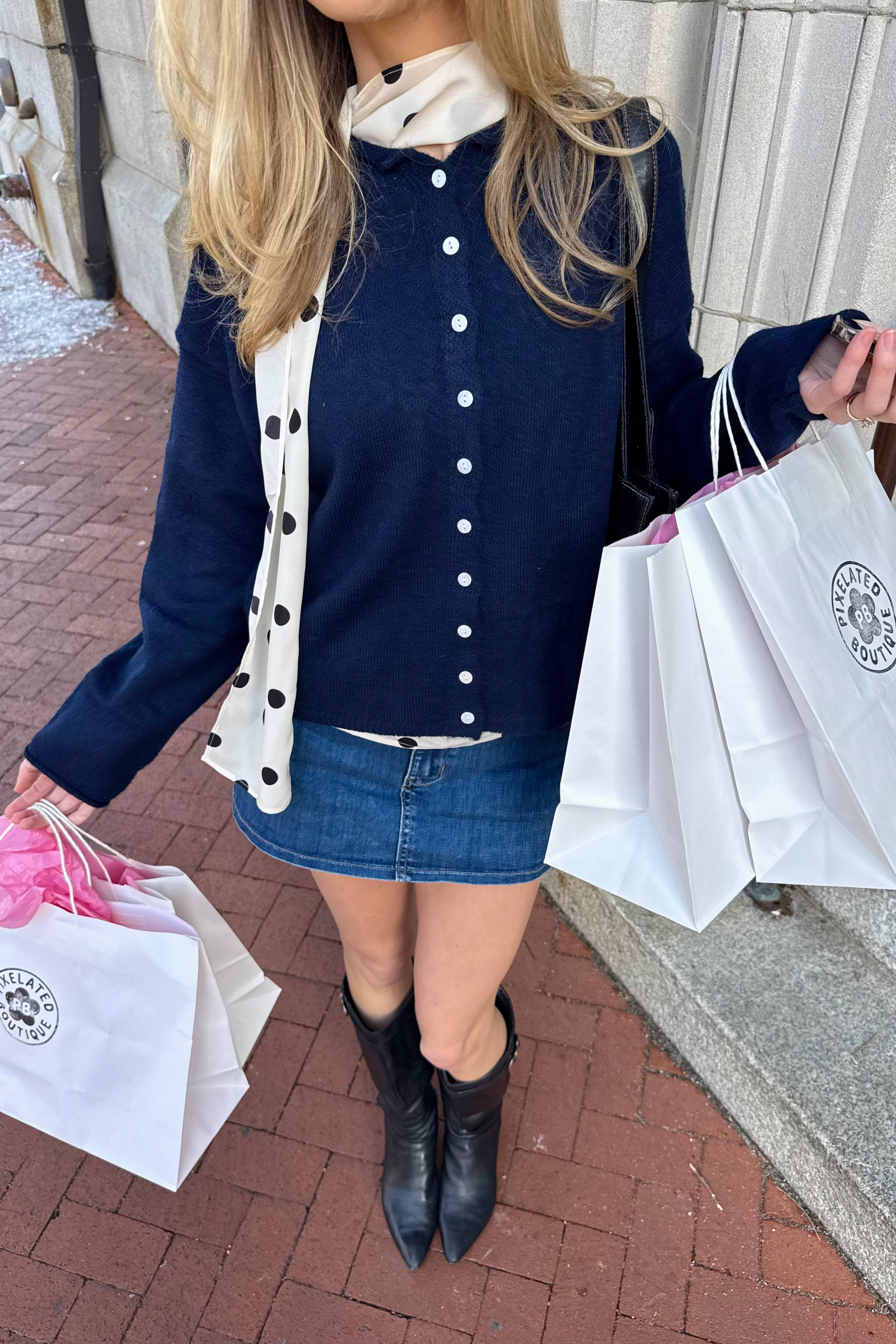 Amelie Collared Cardigan in Navy Blue | Restocked
