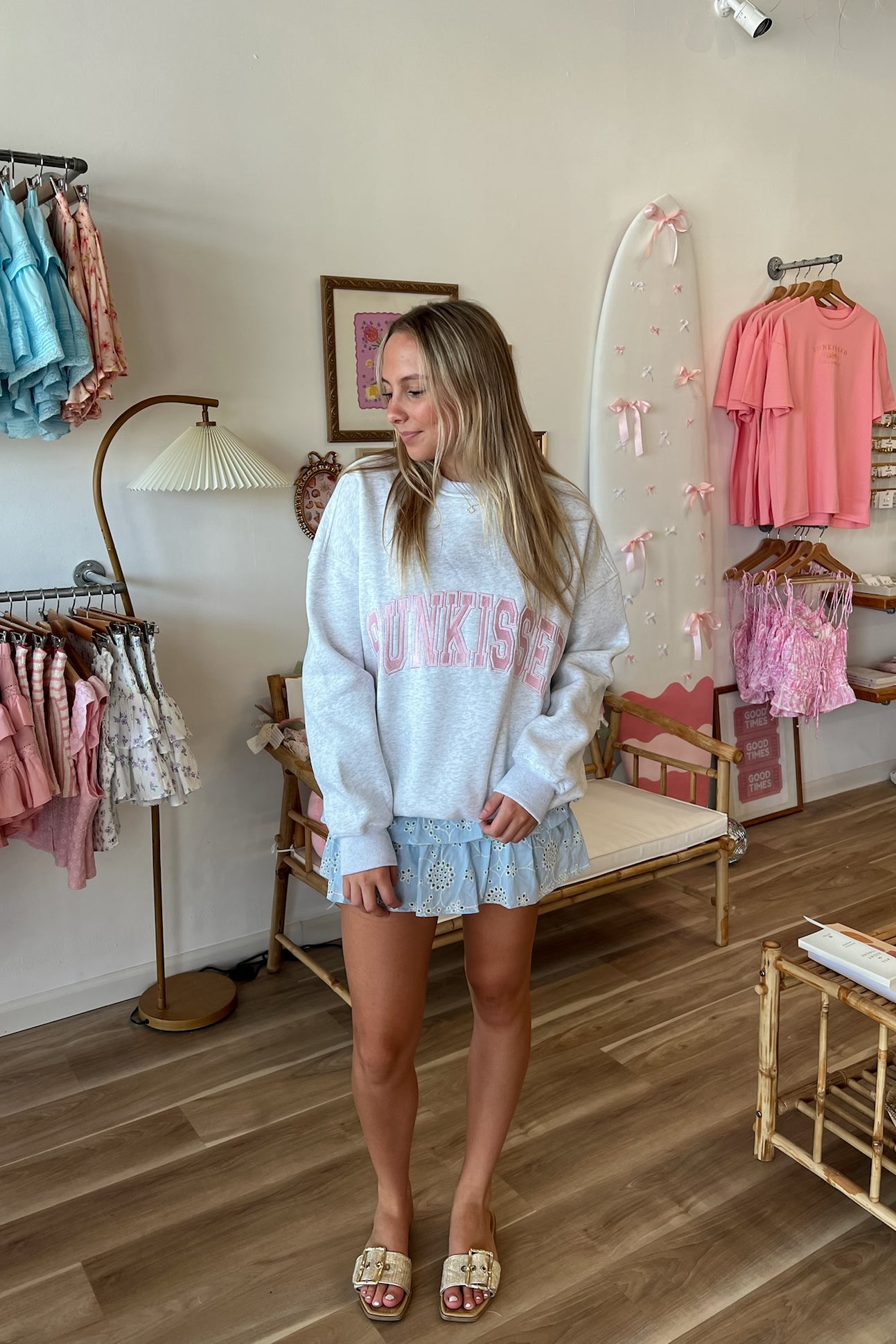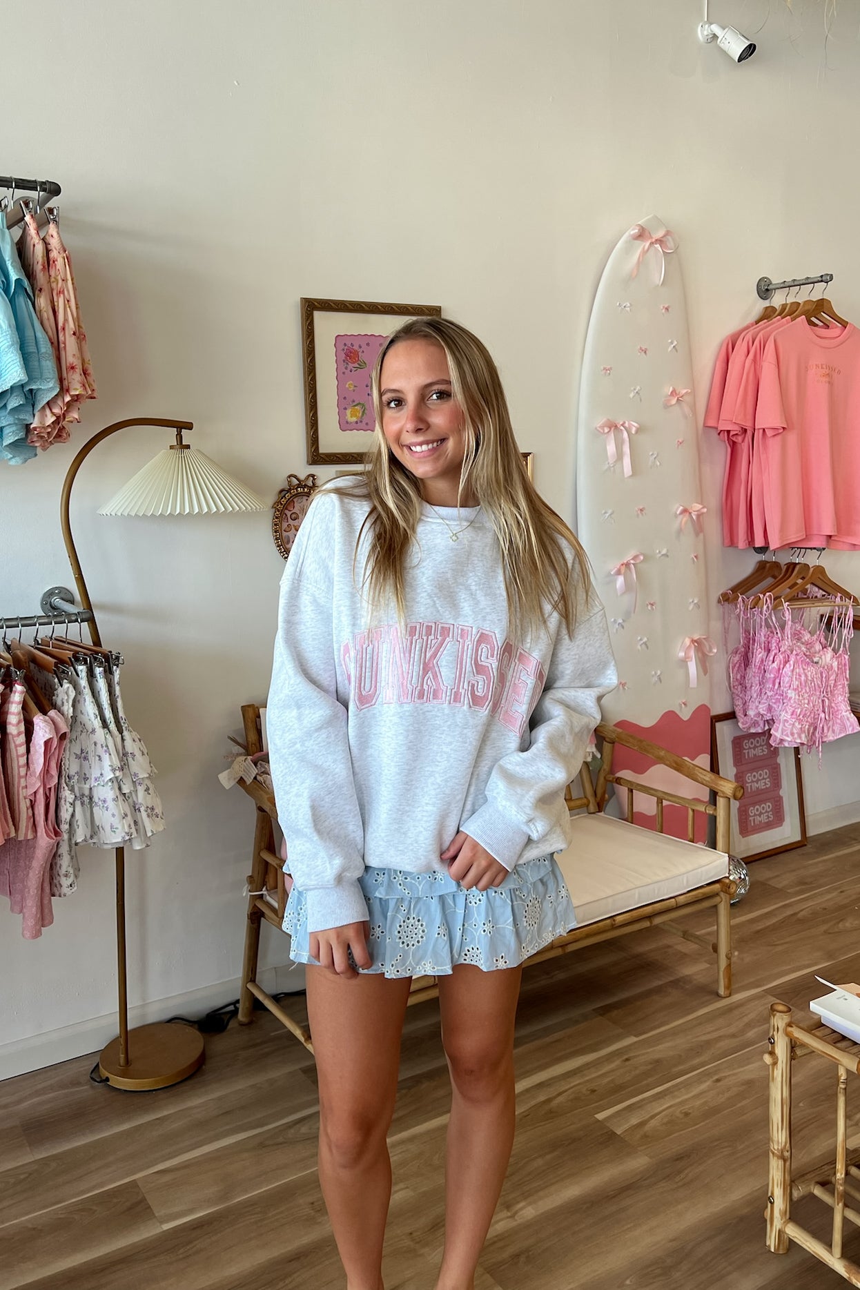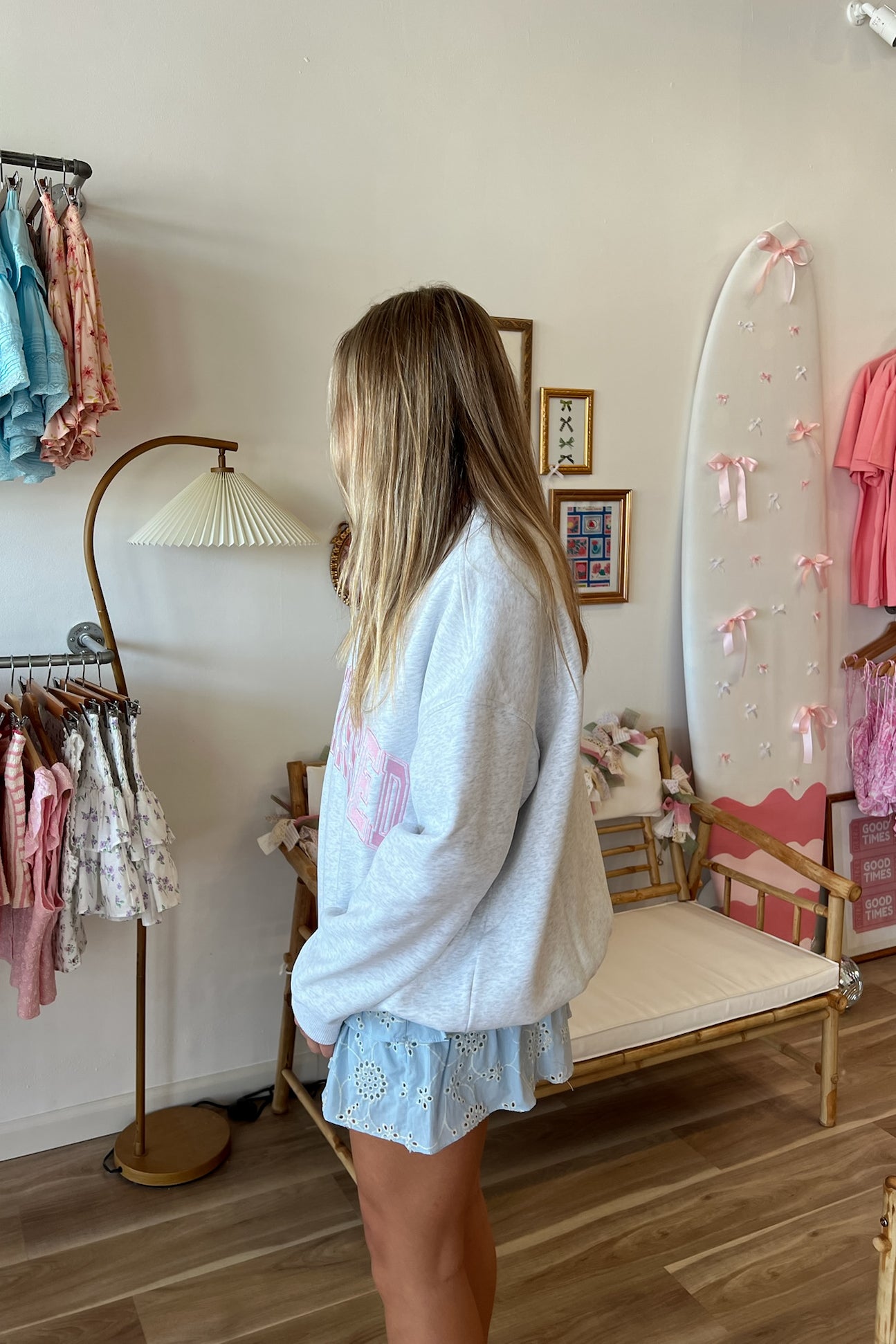 Gray, embroidered sweatshirt made with luxury paint, ink, and thread. Cozy plush material on the inside. Size up for an oversized fit.