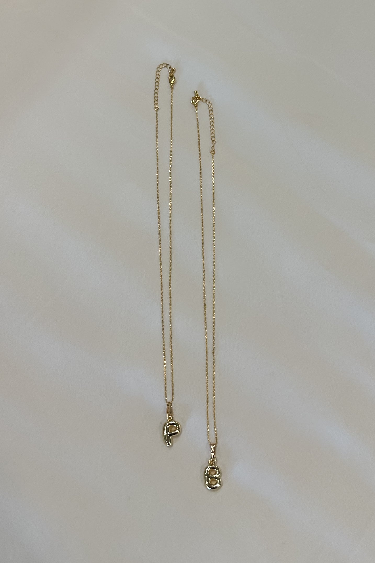 24K Gold Filled, bubble initial pendant on dainty cable chain necklace