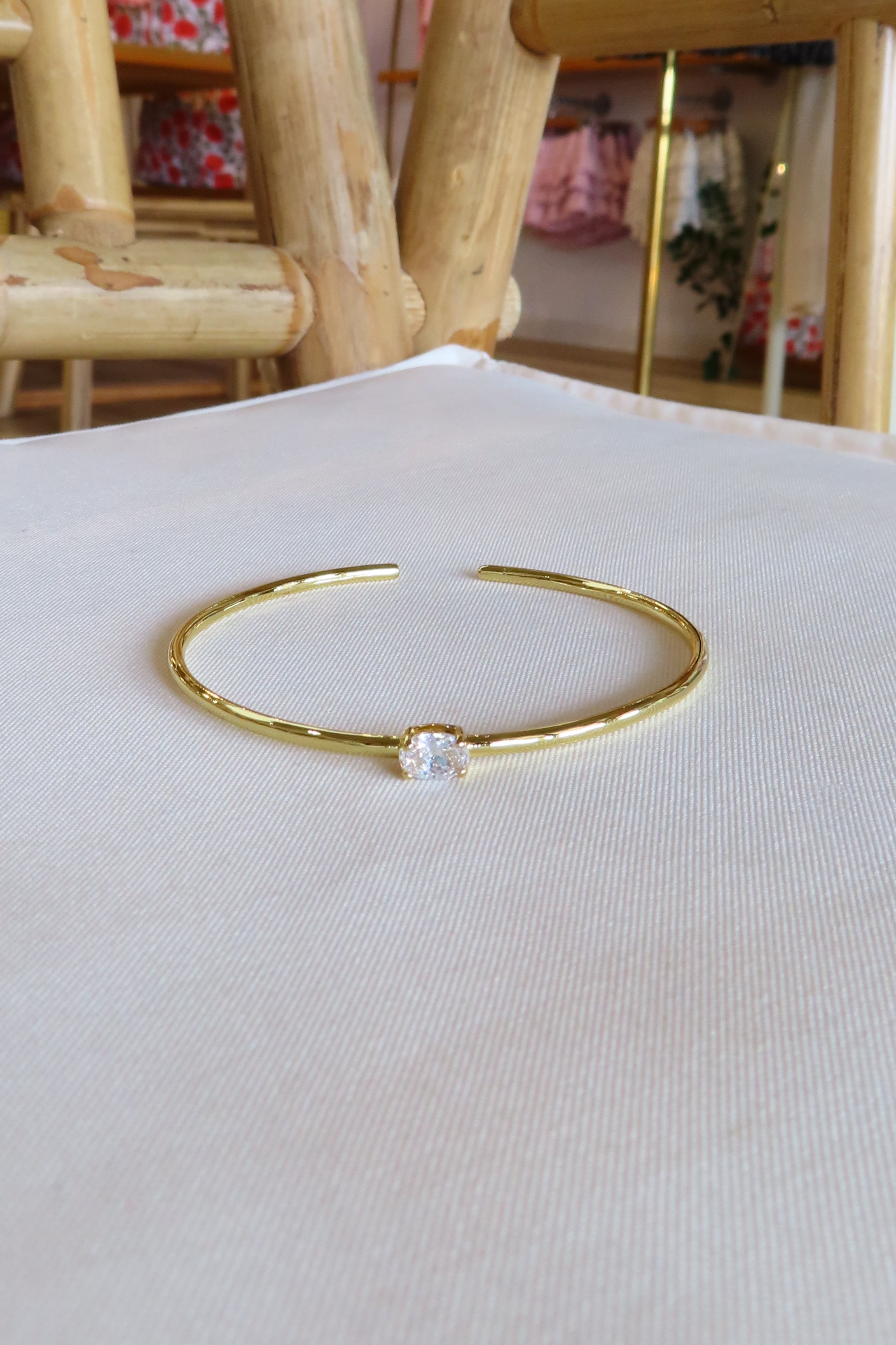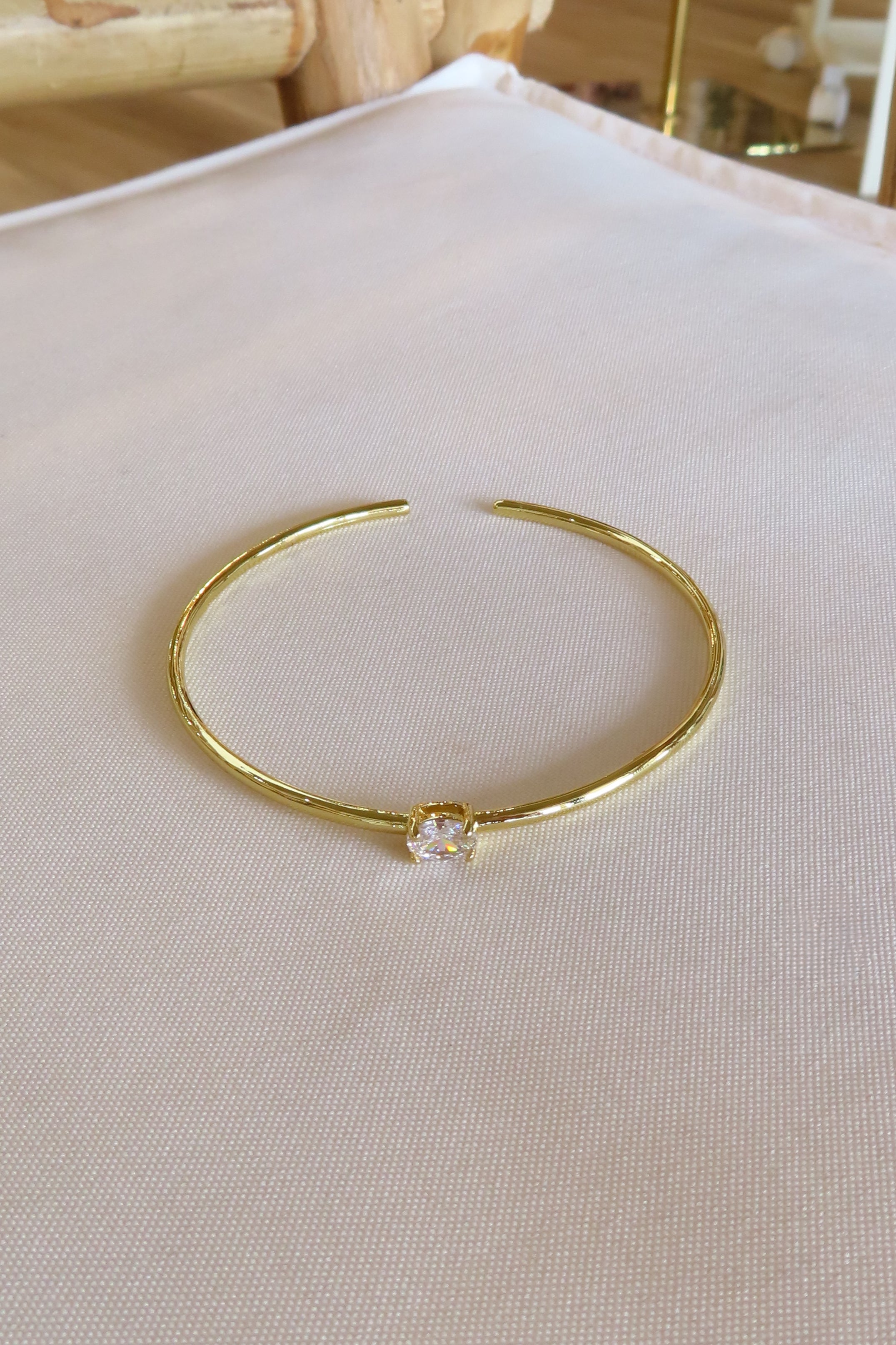 24K Gold filled, cuff bracelet with solitaire Cubic Zirconia