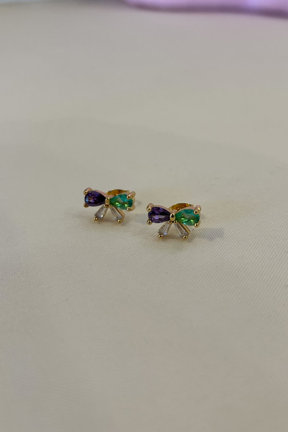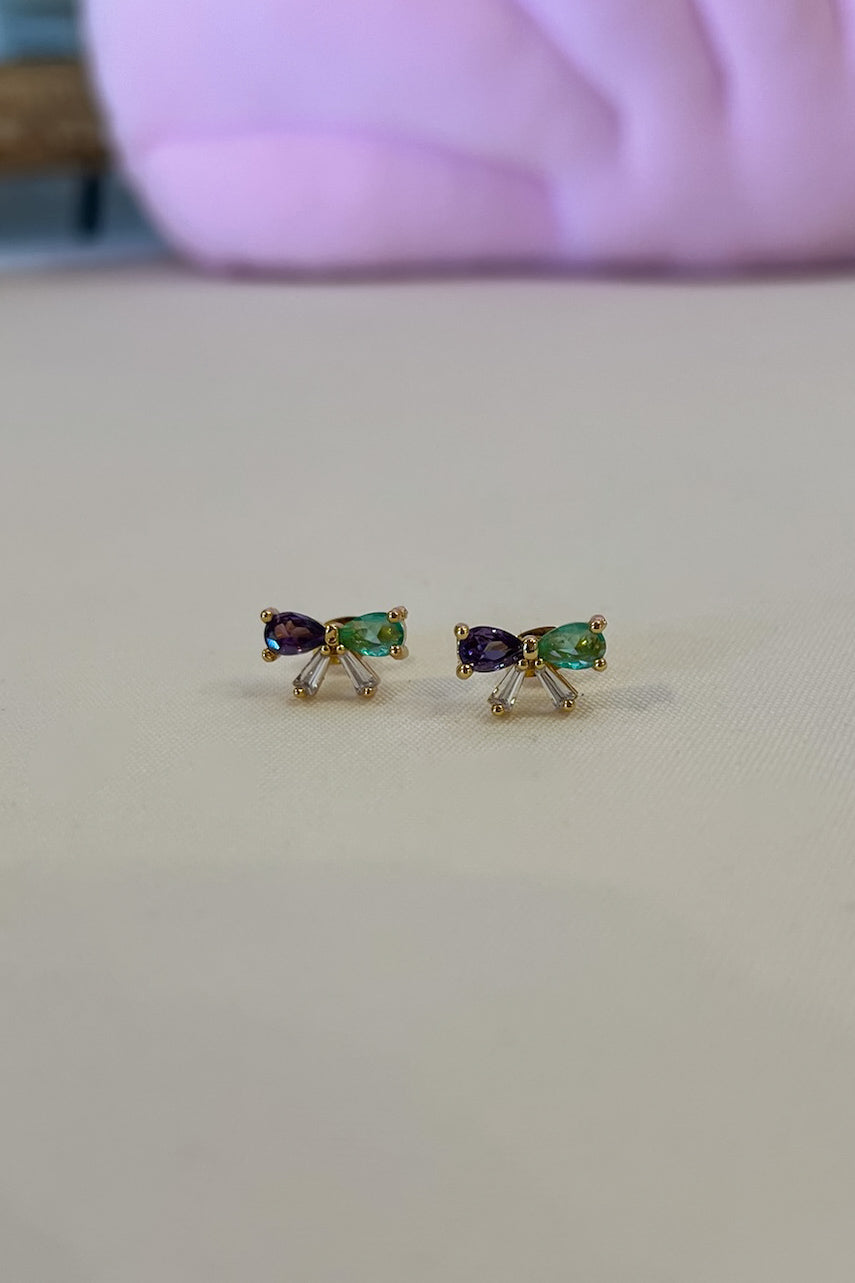 24K Gold Filled, purple and green Cubic Zirconia bow studs