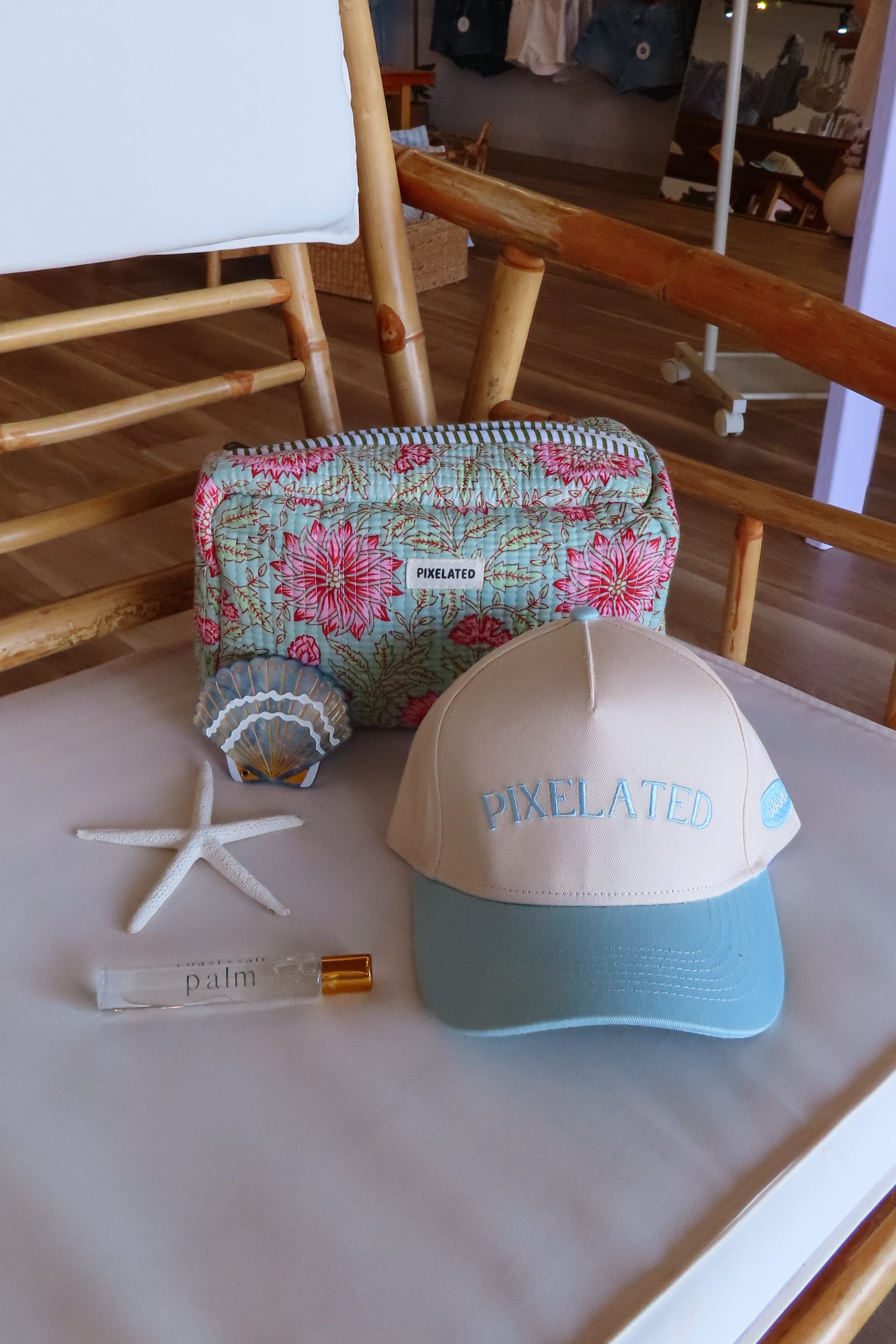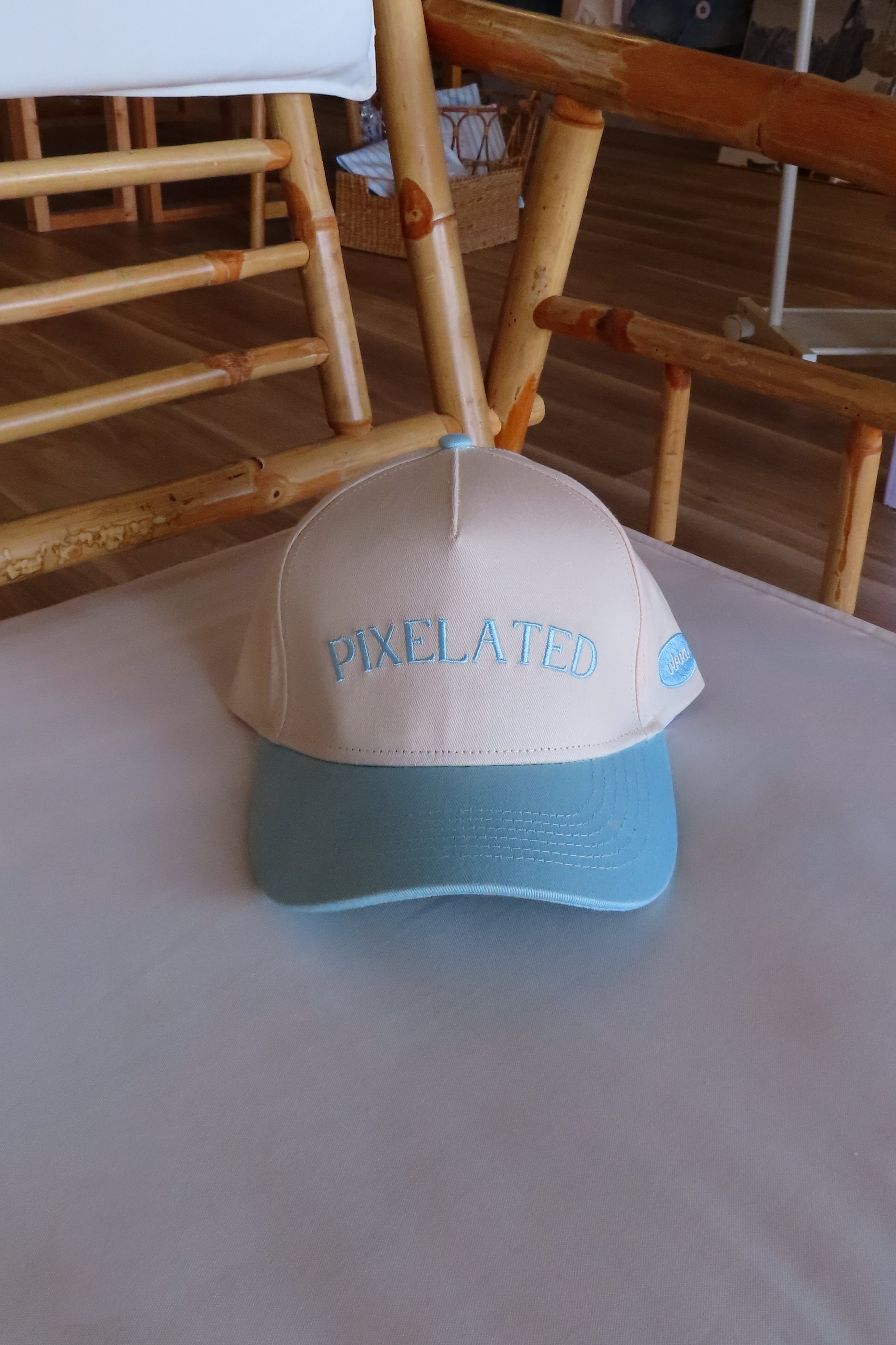 Embroidered vintage trucker hat with adjustable snapback, Pixelated on front, and VBVA on side