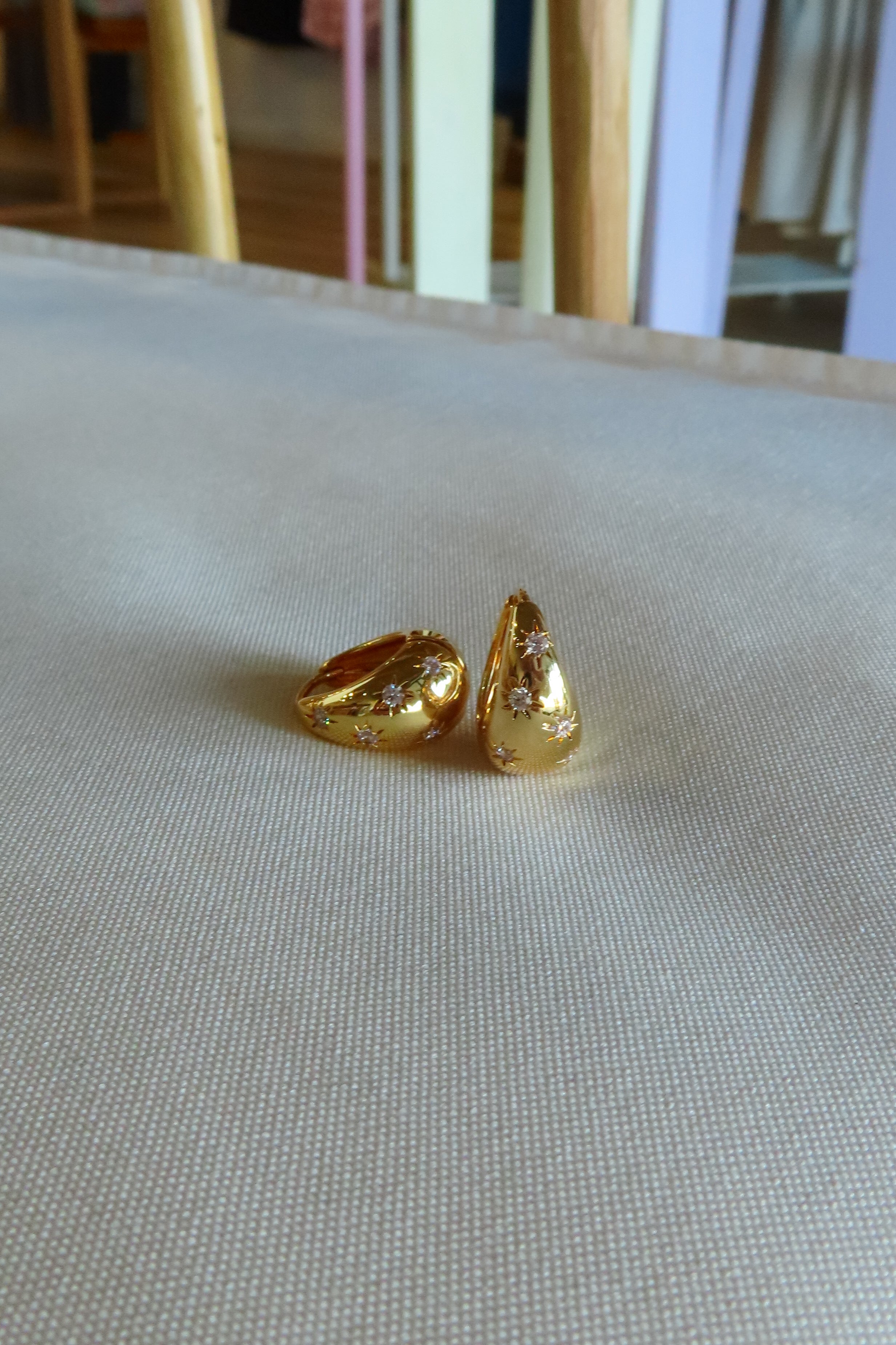 18K Gold filled, Cubic Zirconia star dome hoop earrings