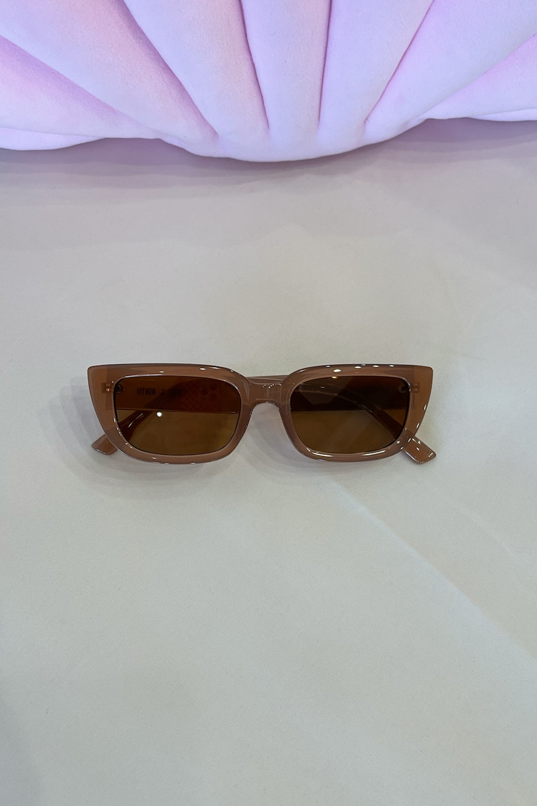 Polarized sunglasses with a sleek rectangular cat eye frame and thick temples. These sunnies feature a high-quality frame with glare-reducing polarized lenses and 100% UV protection.