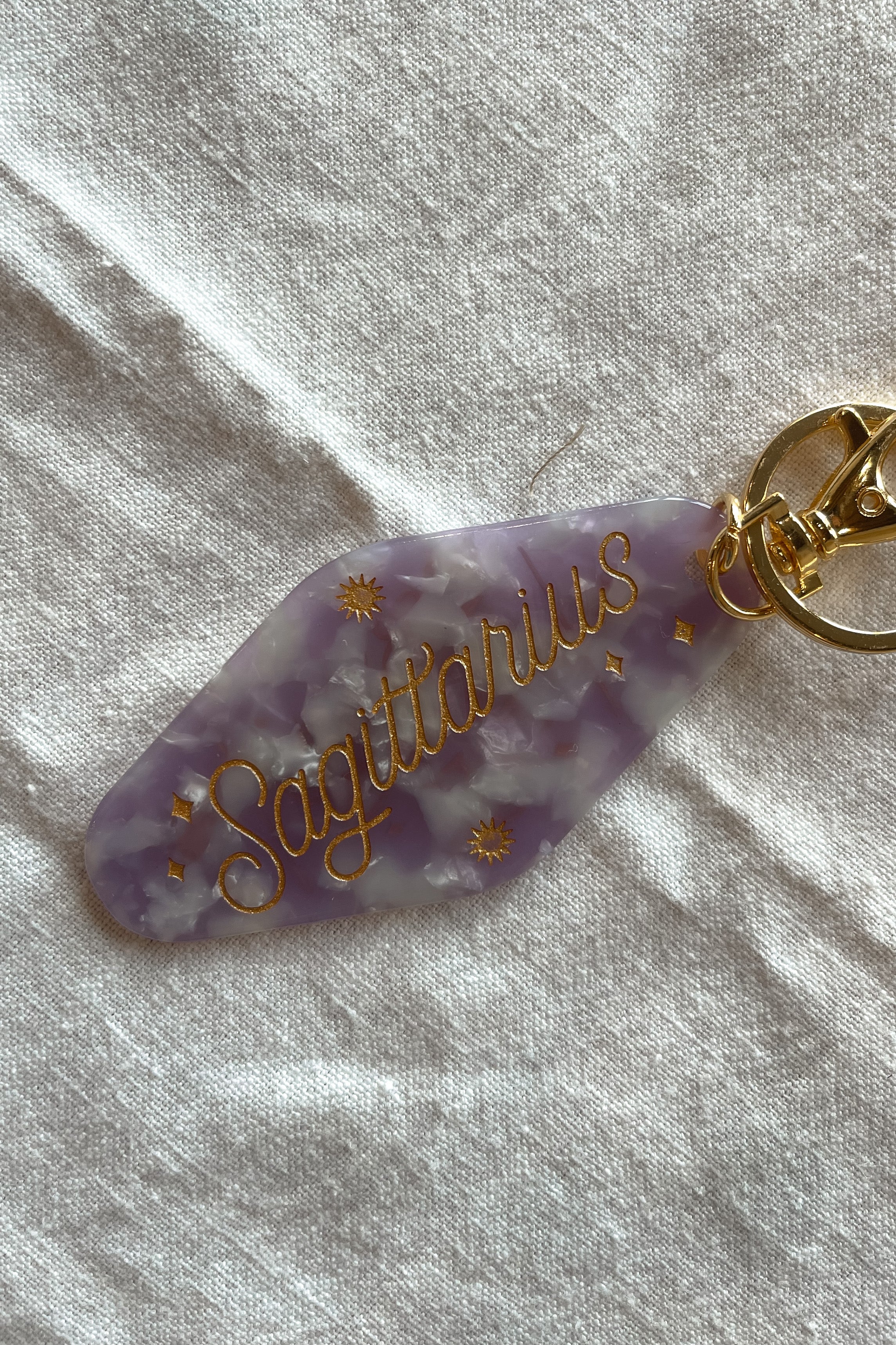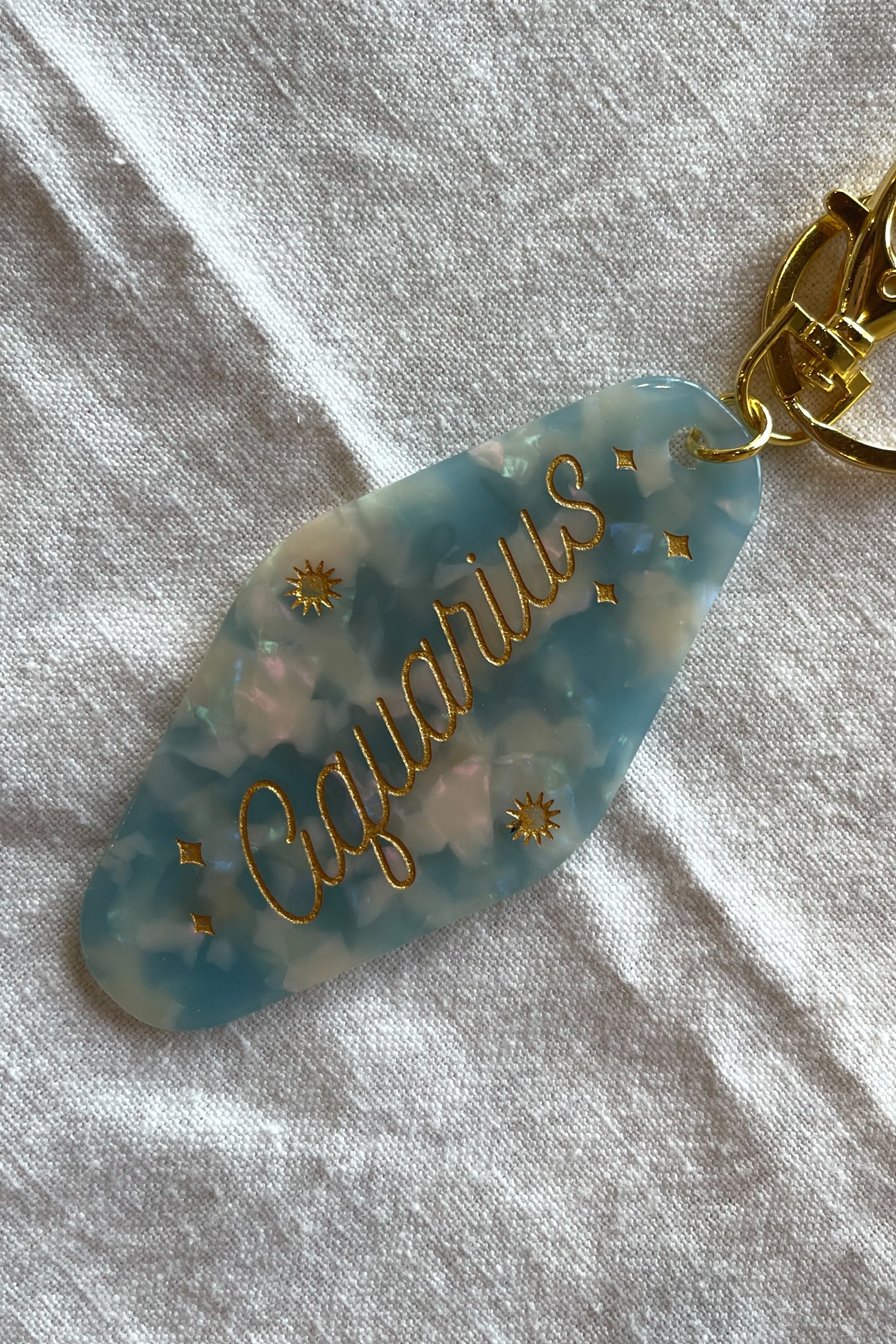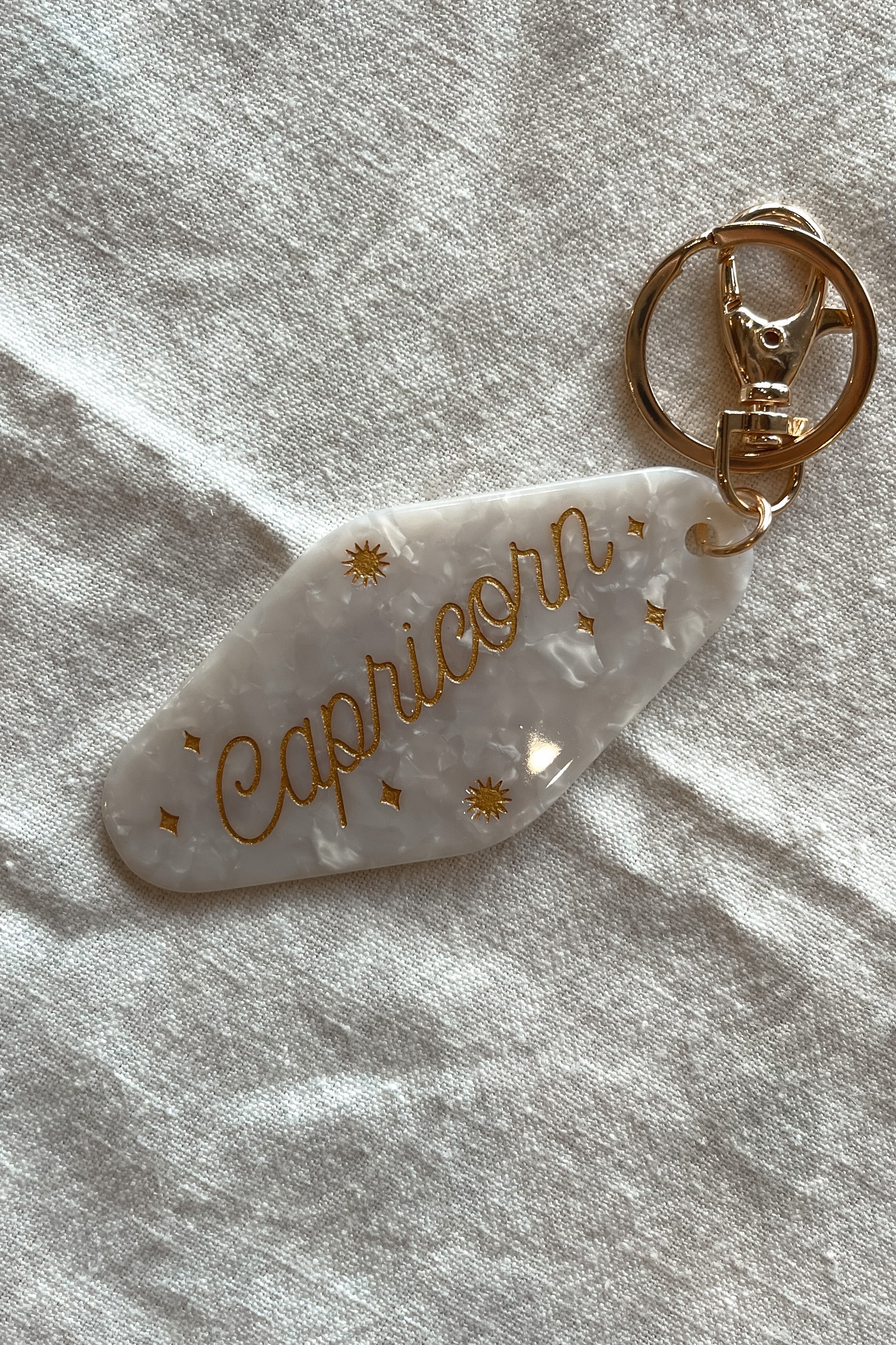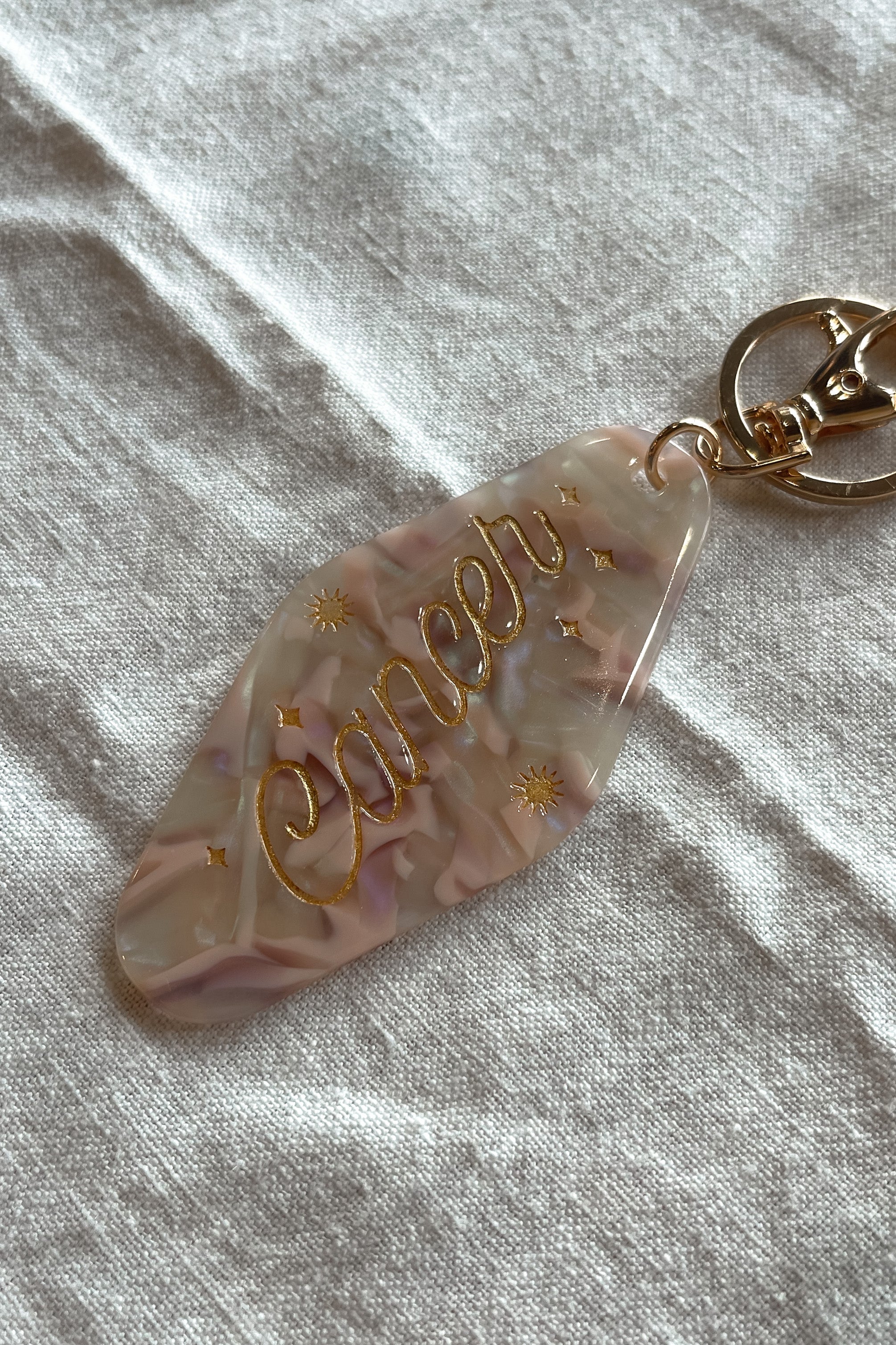 Horoscope Motel Keychain, speckled marble acetate with gold letter engraving