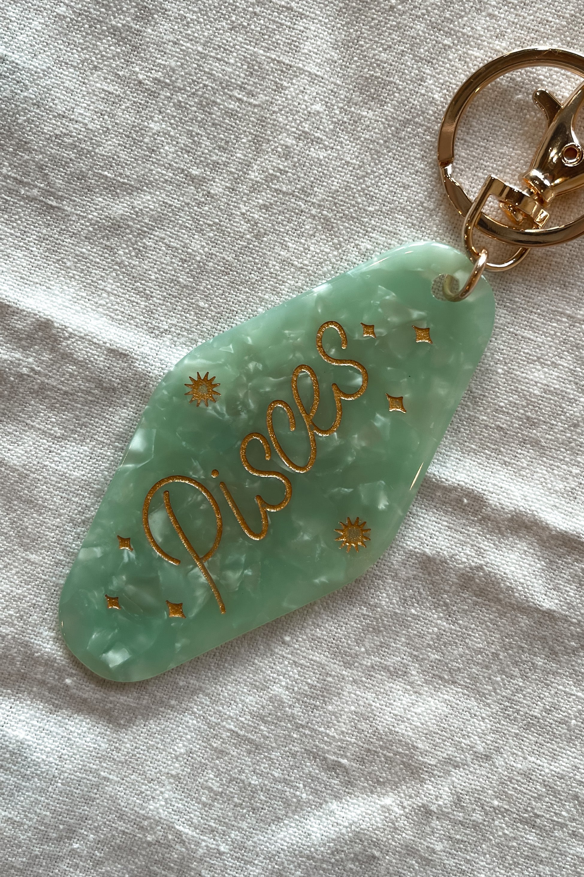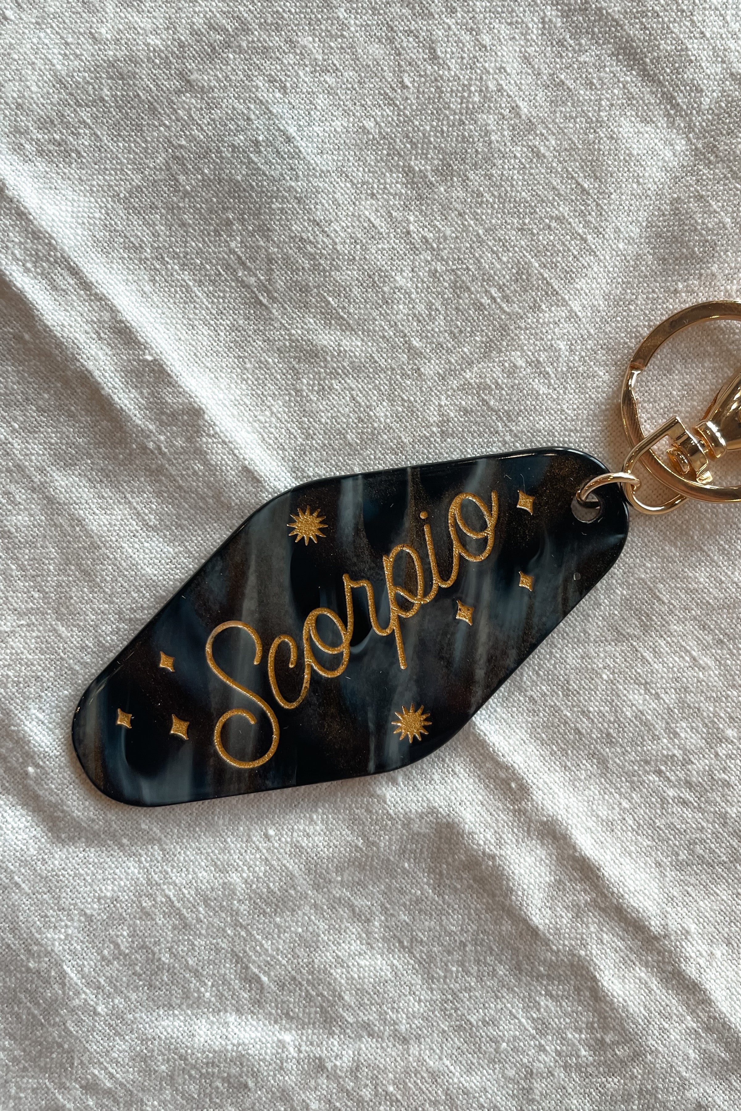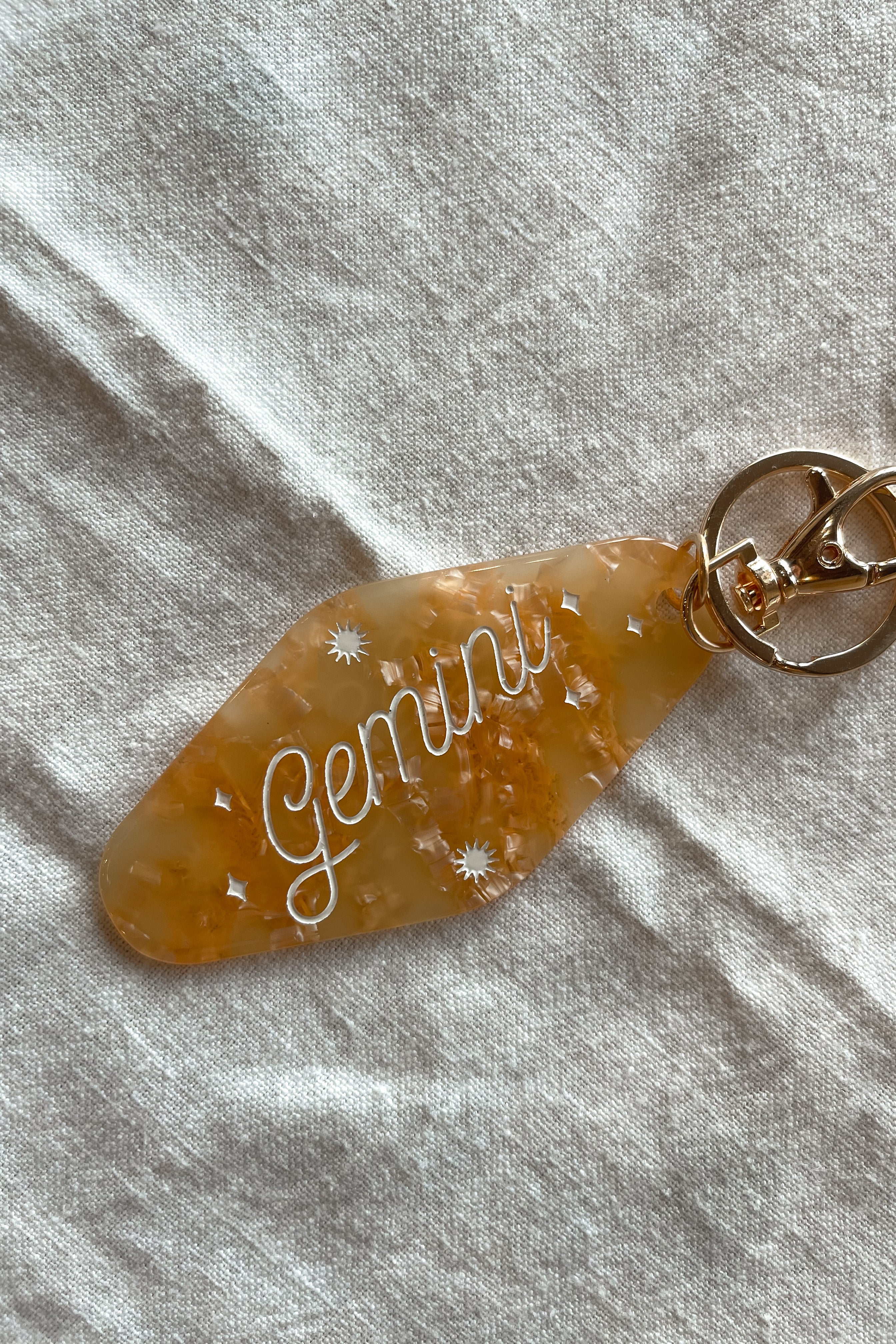 Horoscope Motel Keychain, speckled marble acetate with gold letter engraving