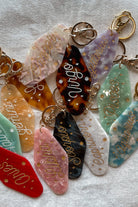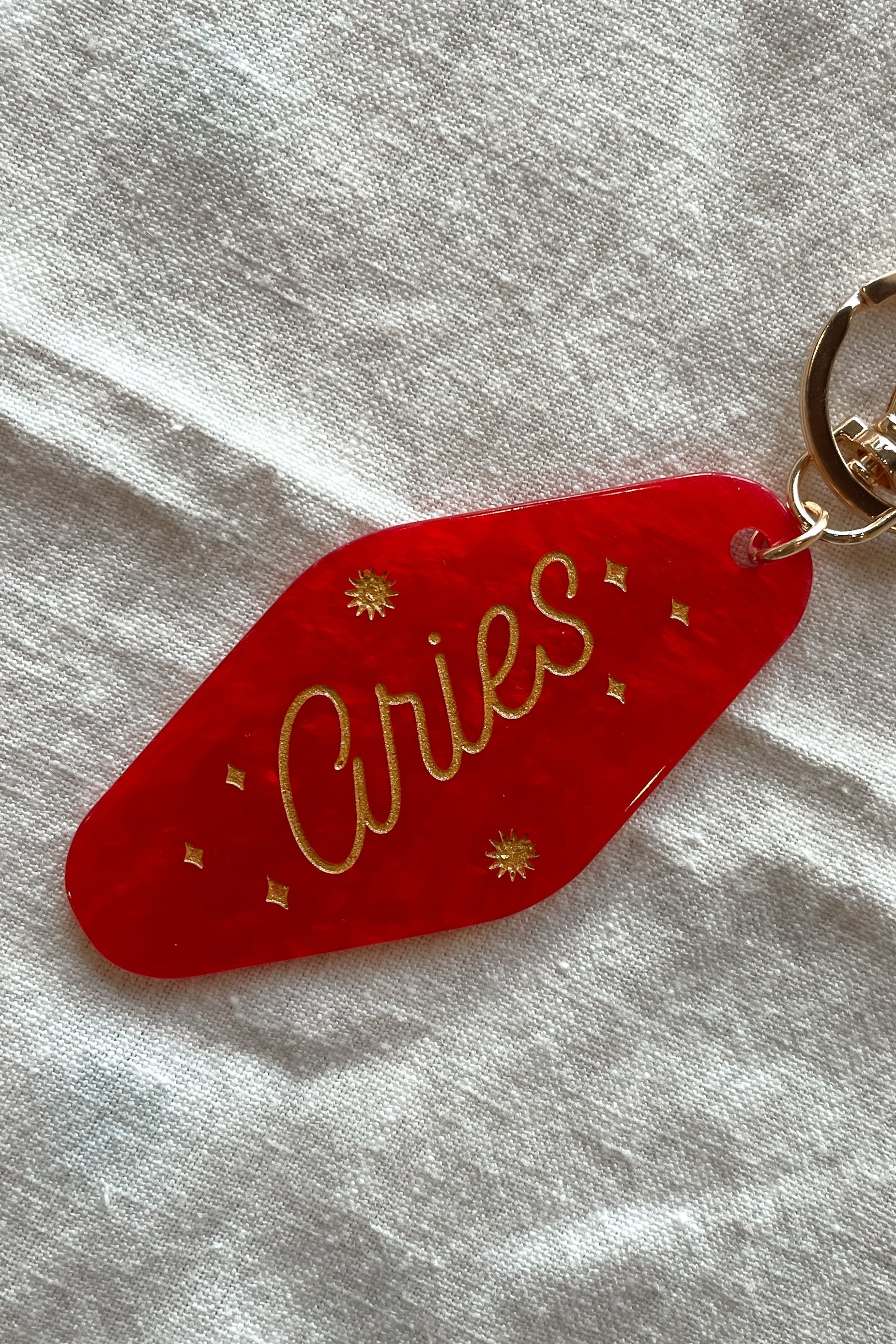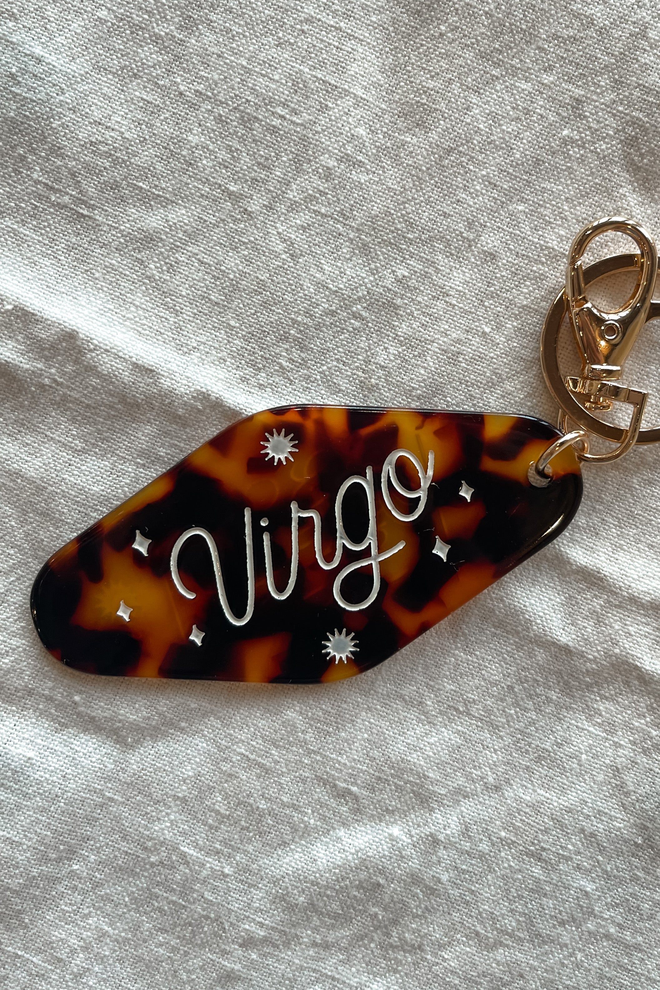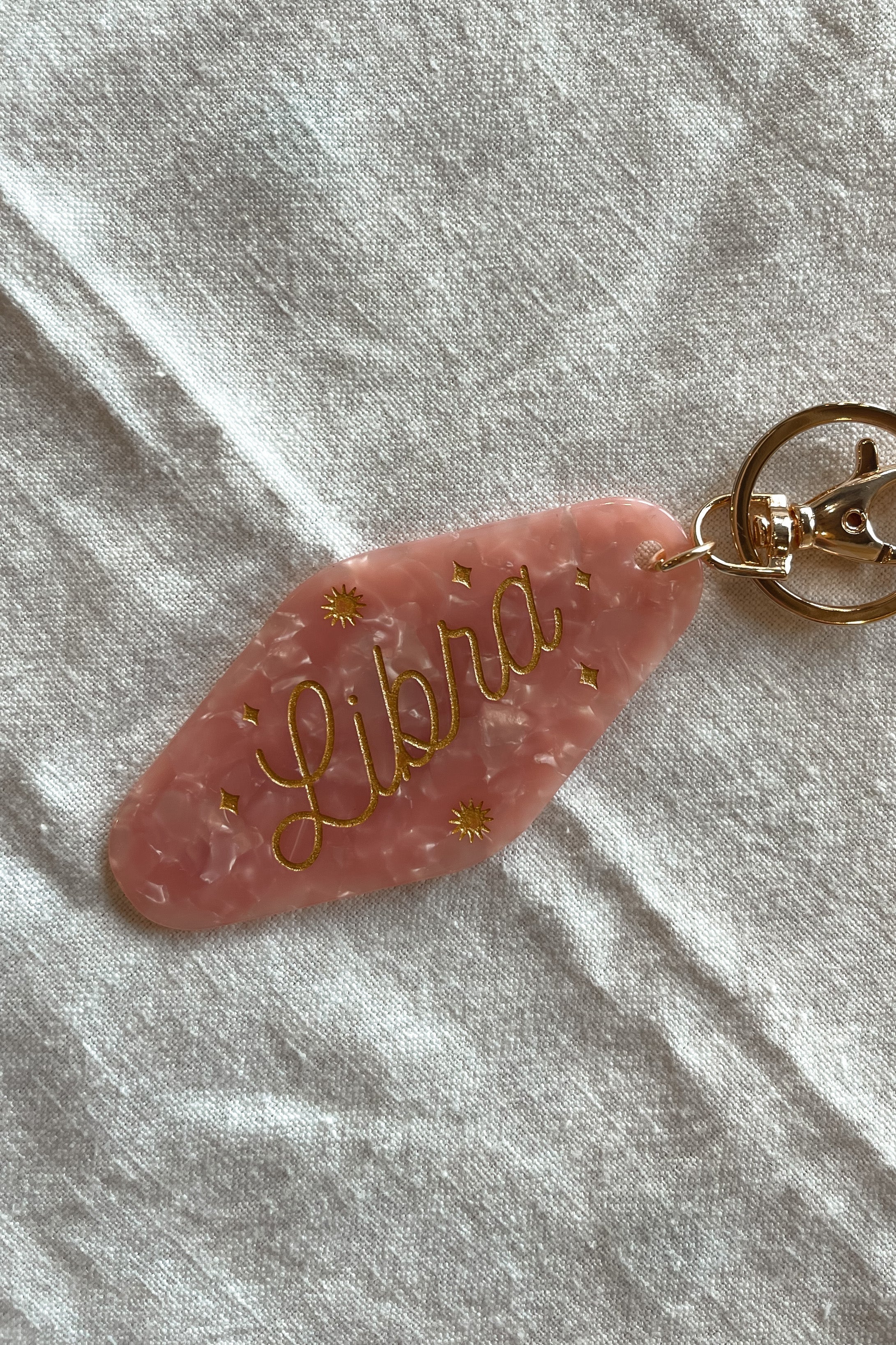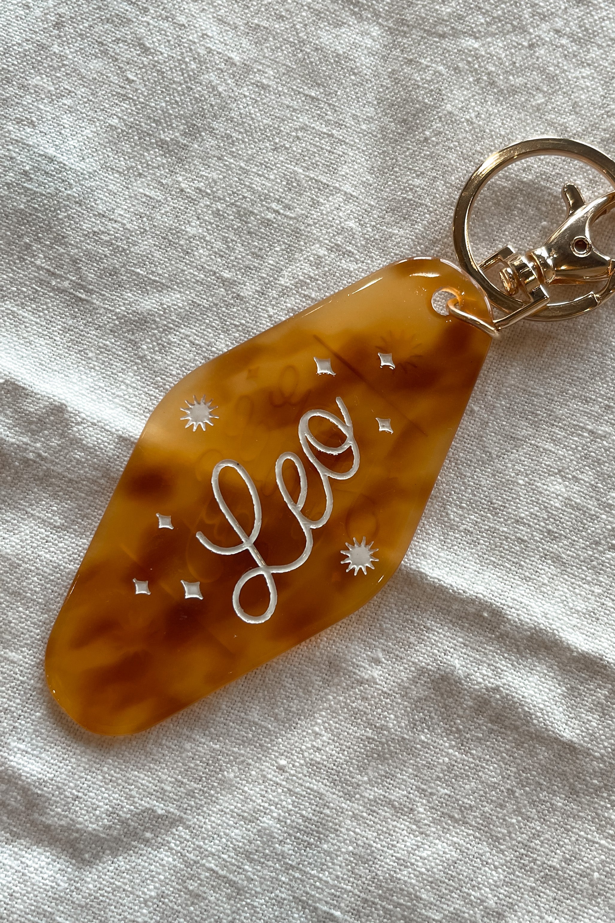 Horoscope Motel Keychain, speckled marble acetate with gold letter engraving
