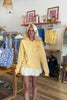 Yellow, graphic hoodie with dropped shoulder, front pocket, and fleece lining