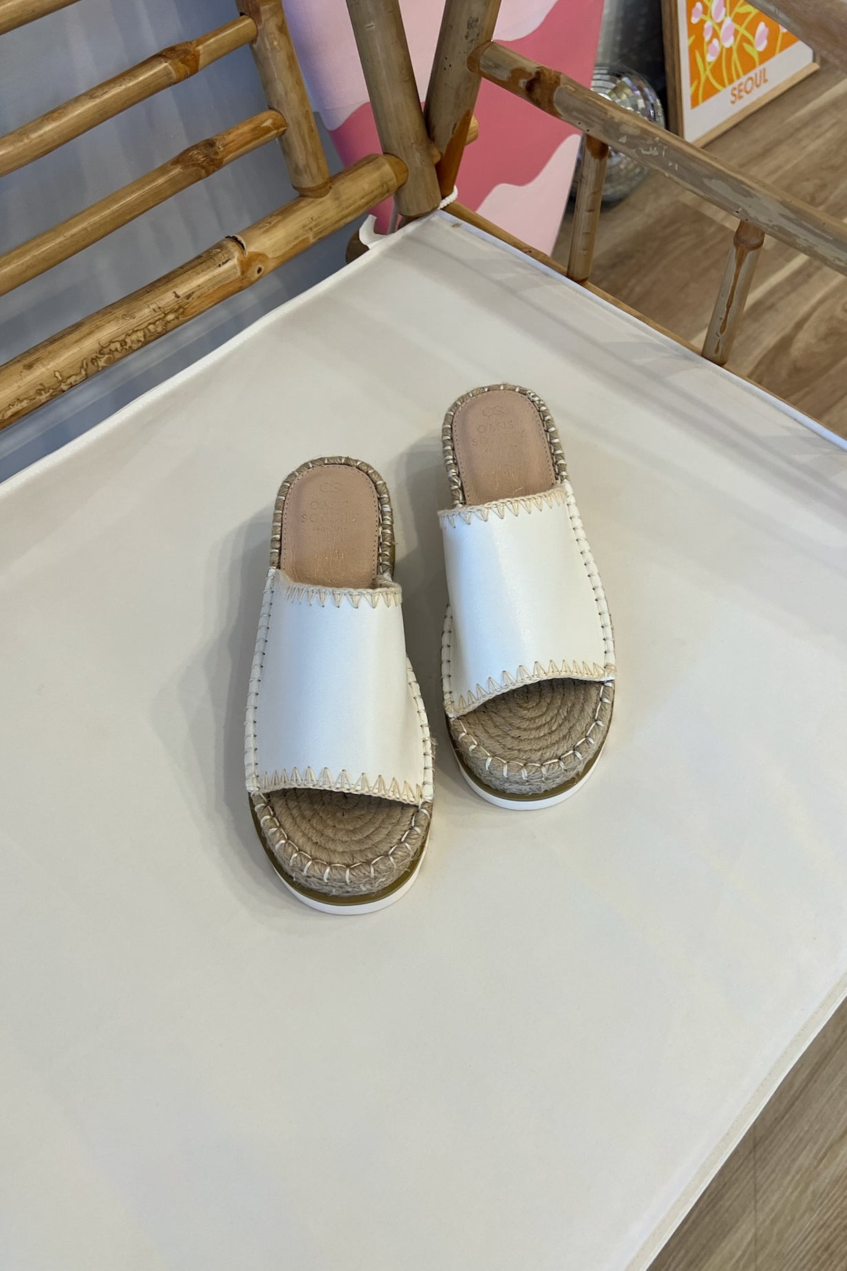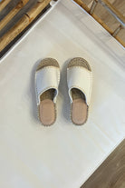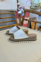 White, espadrille platform slide with a tread sole