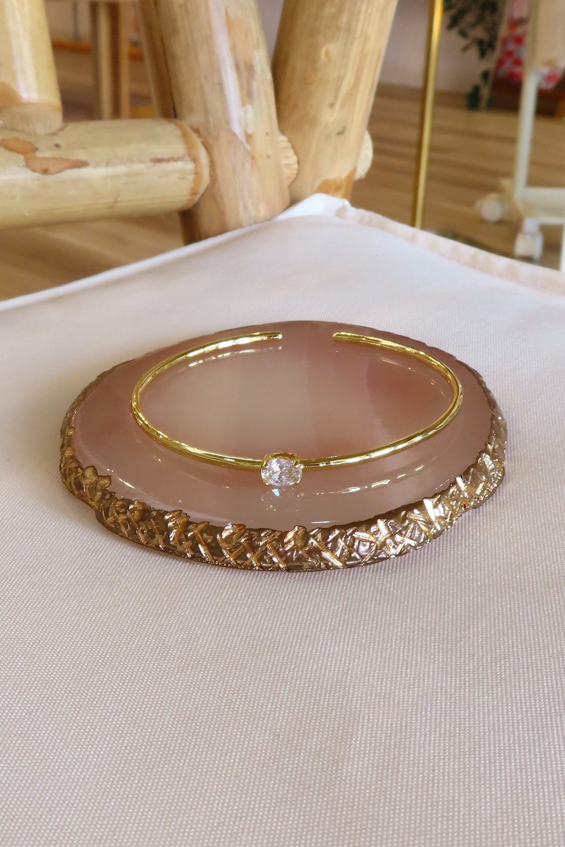 24K Gold filled, cuff bracelet with solitaire Cubic Zirconia