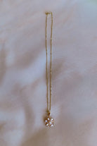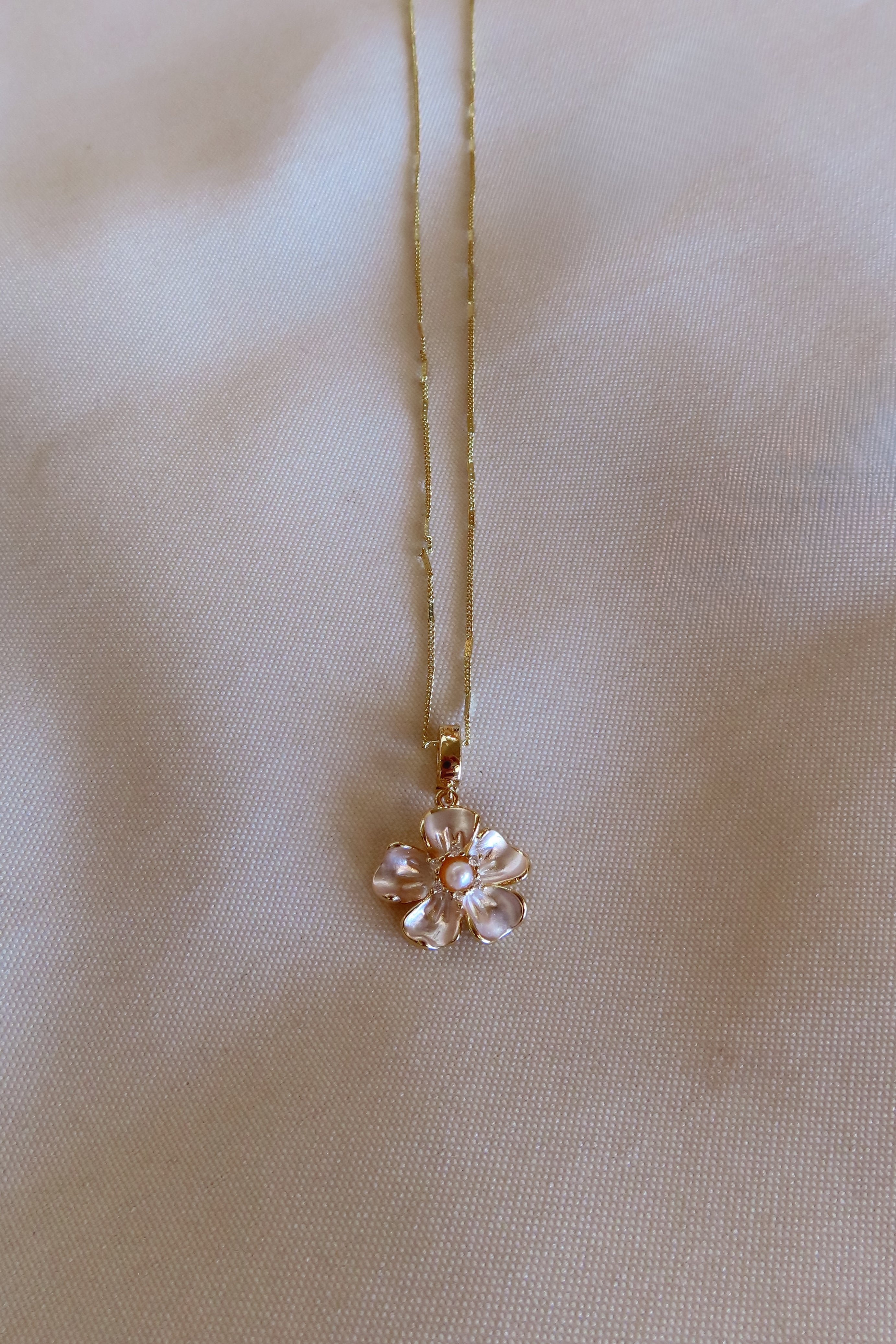 24K Gold Filled, Singapore chain with shell pearl and Cubic Zirconia flower pendant