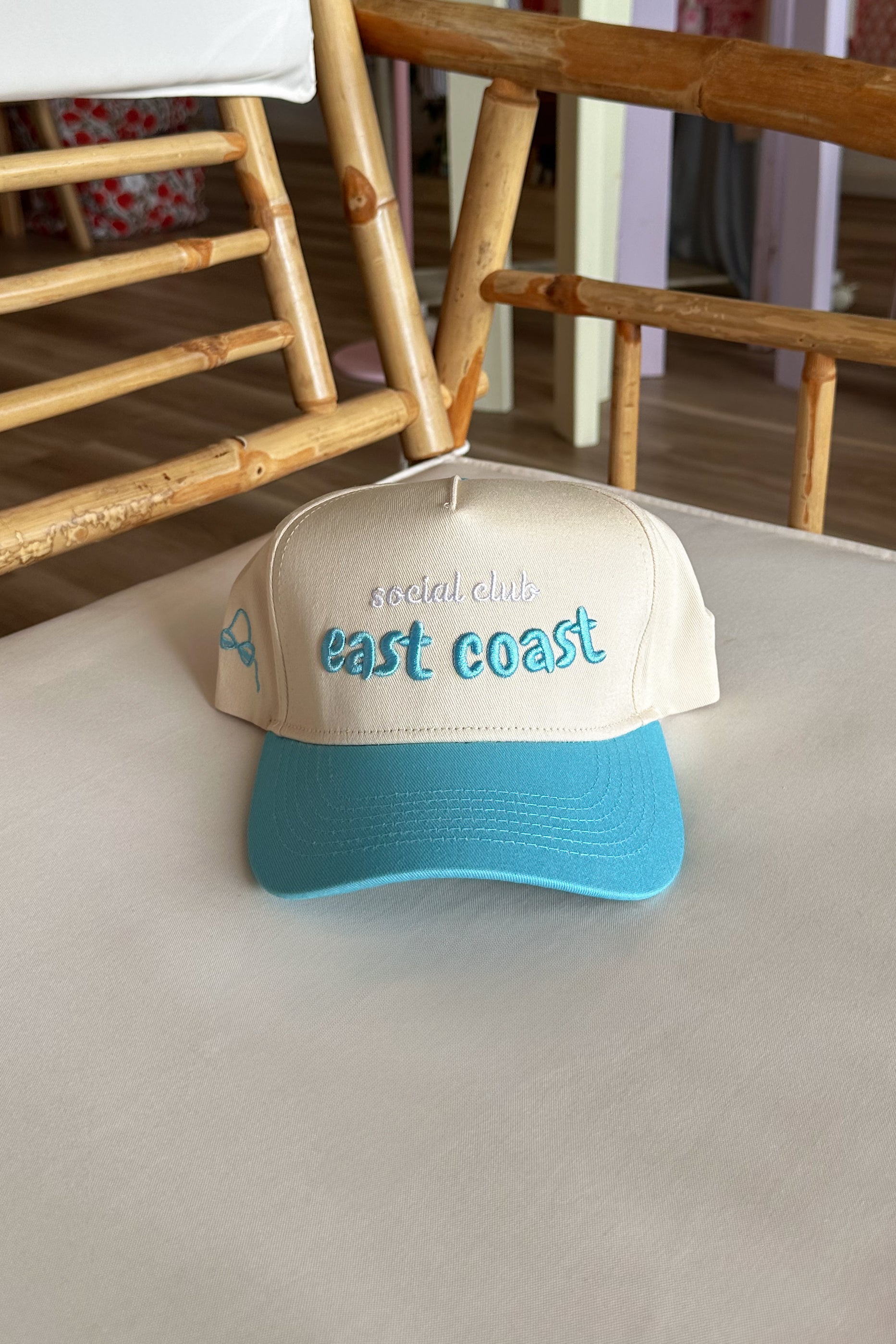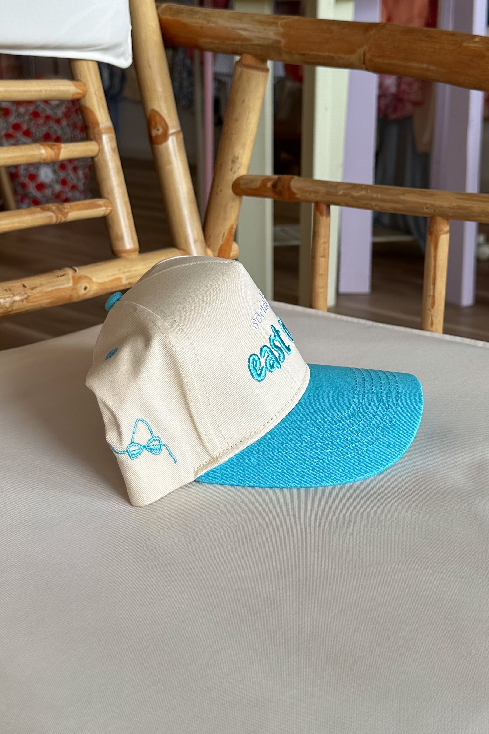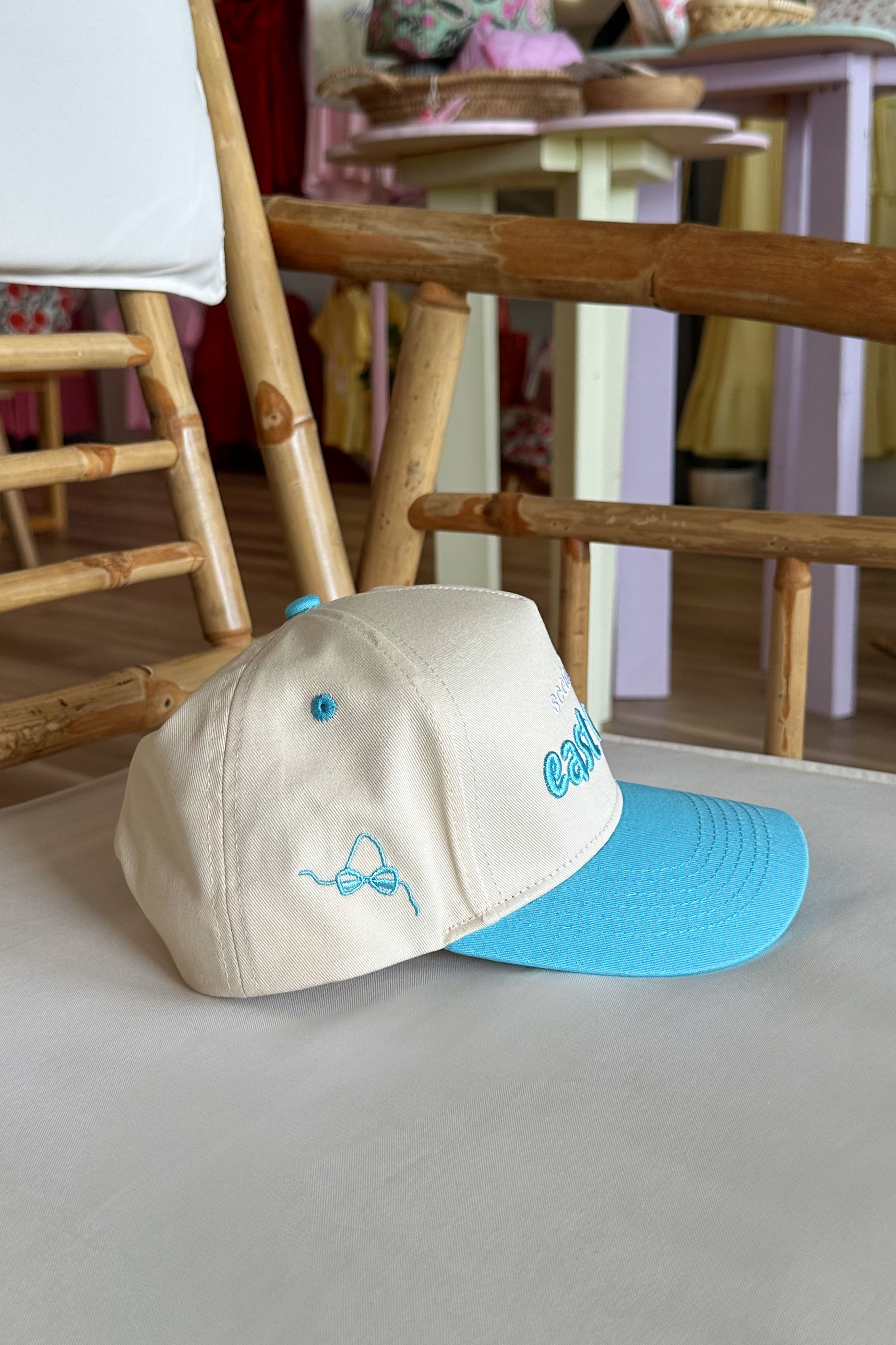 Embroidered vintage trucker hat with adjustable snapback and bikini design on side
