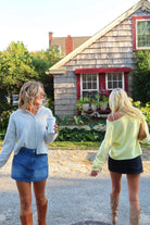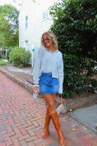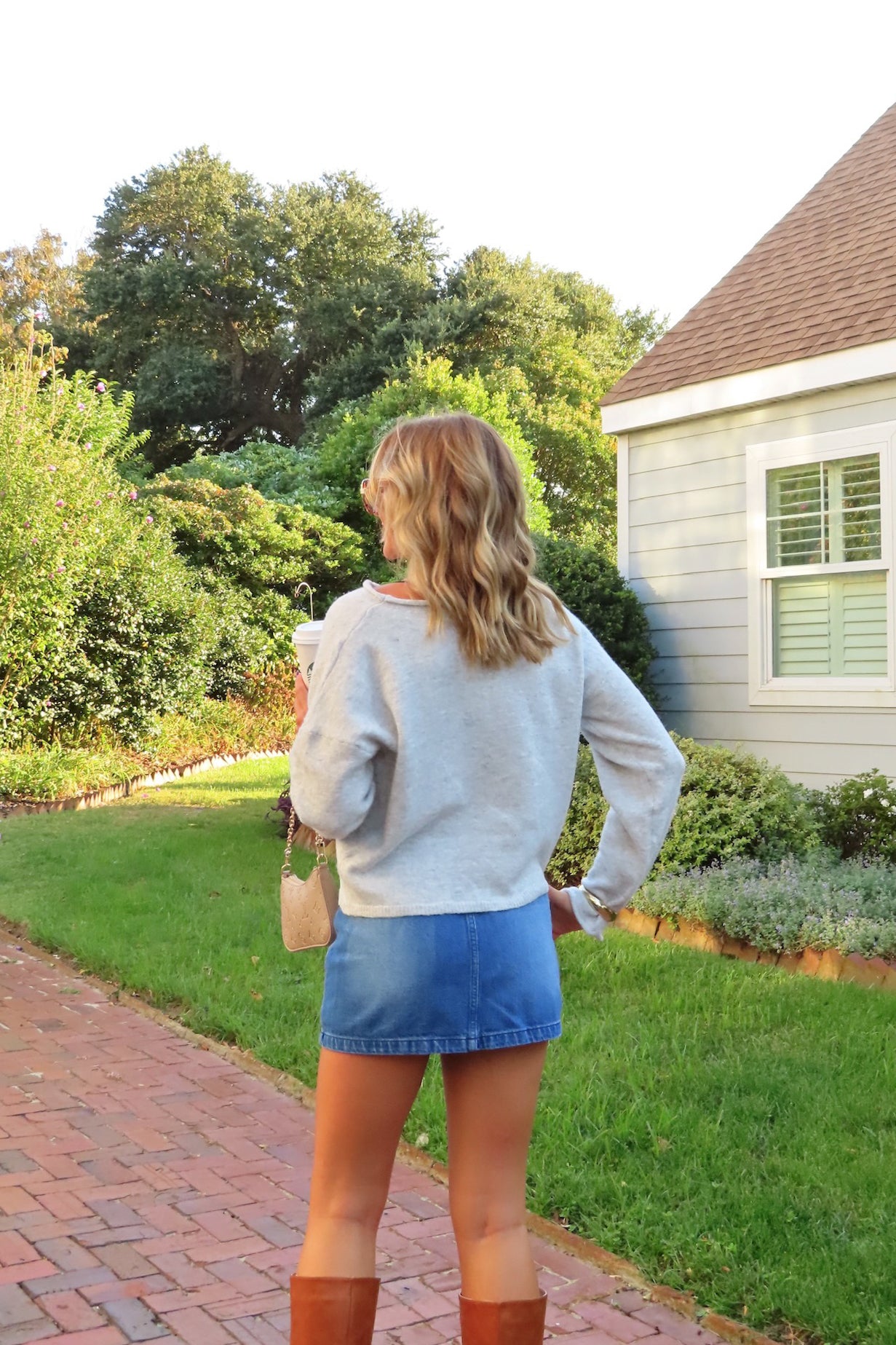 Blue, denim mini skirt with barrel silhouette and inside shorts
