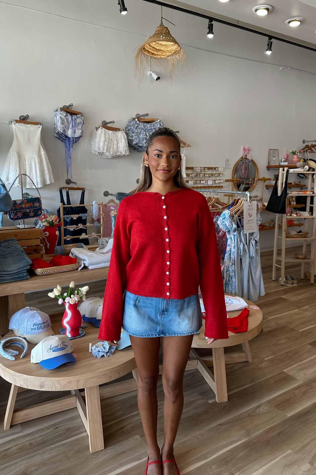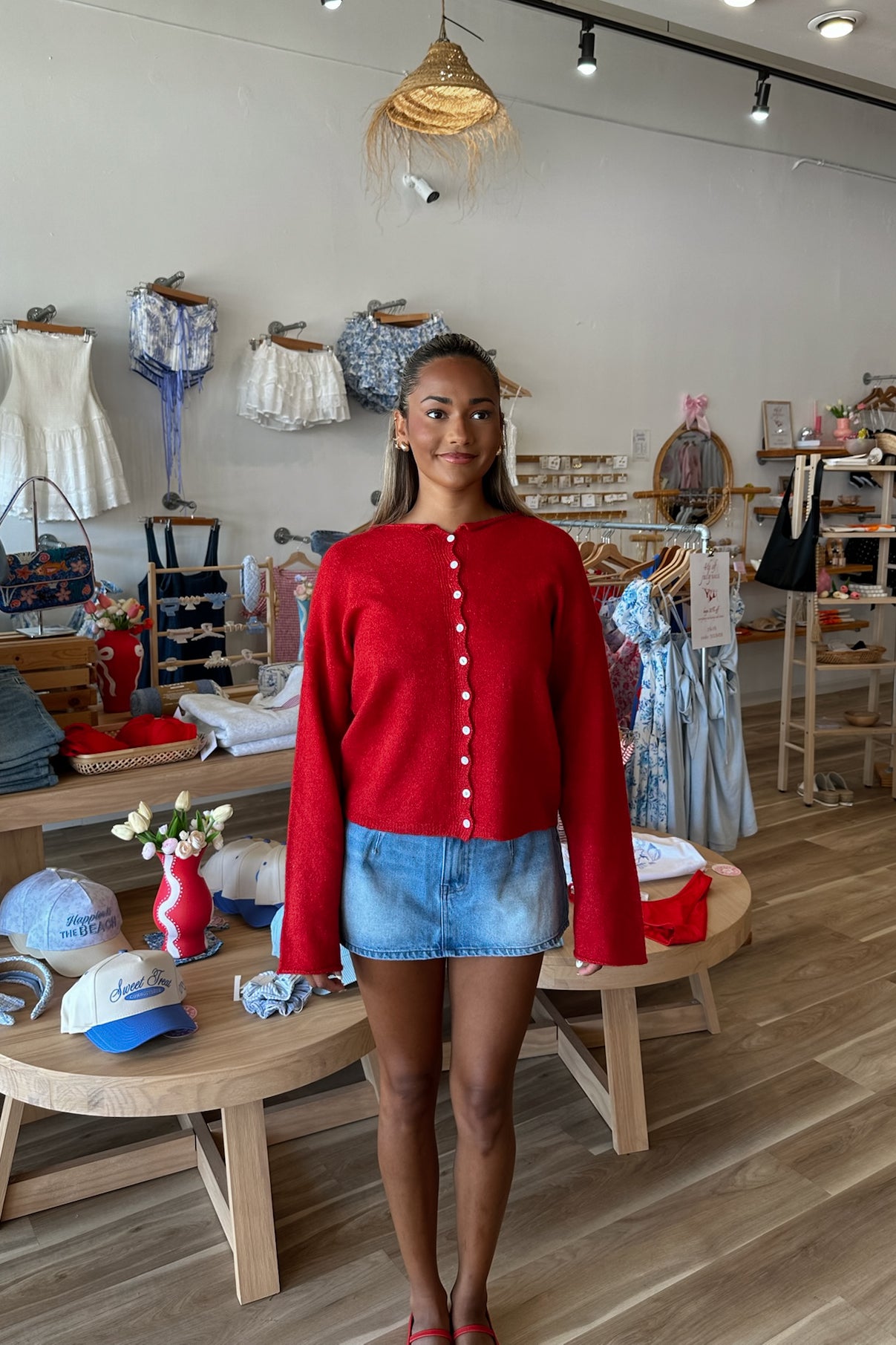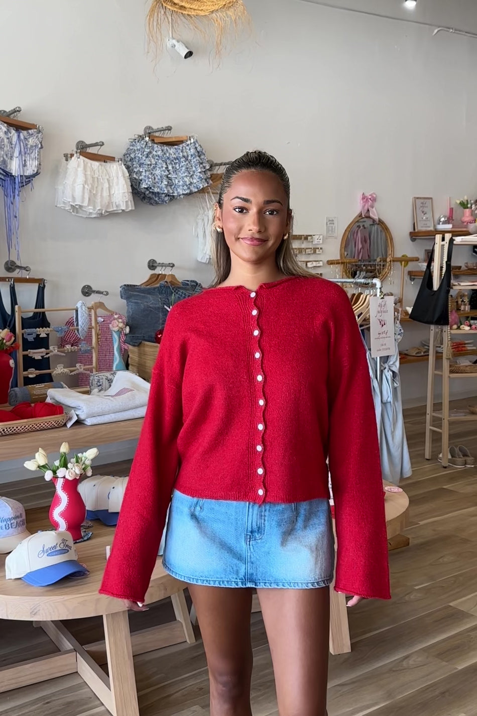 Amelie Collared Cardigan in Red | Restocked
