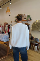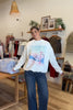 Cream, embroidered sweatshirt made with luxury paint, ink, and thread. Cozy plush material on the inside. Size up for an oversized fit.