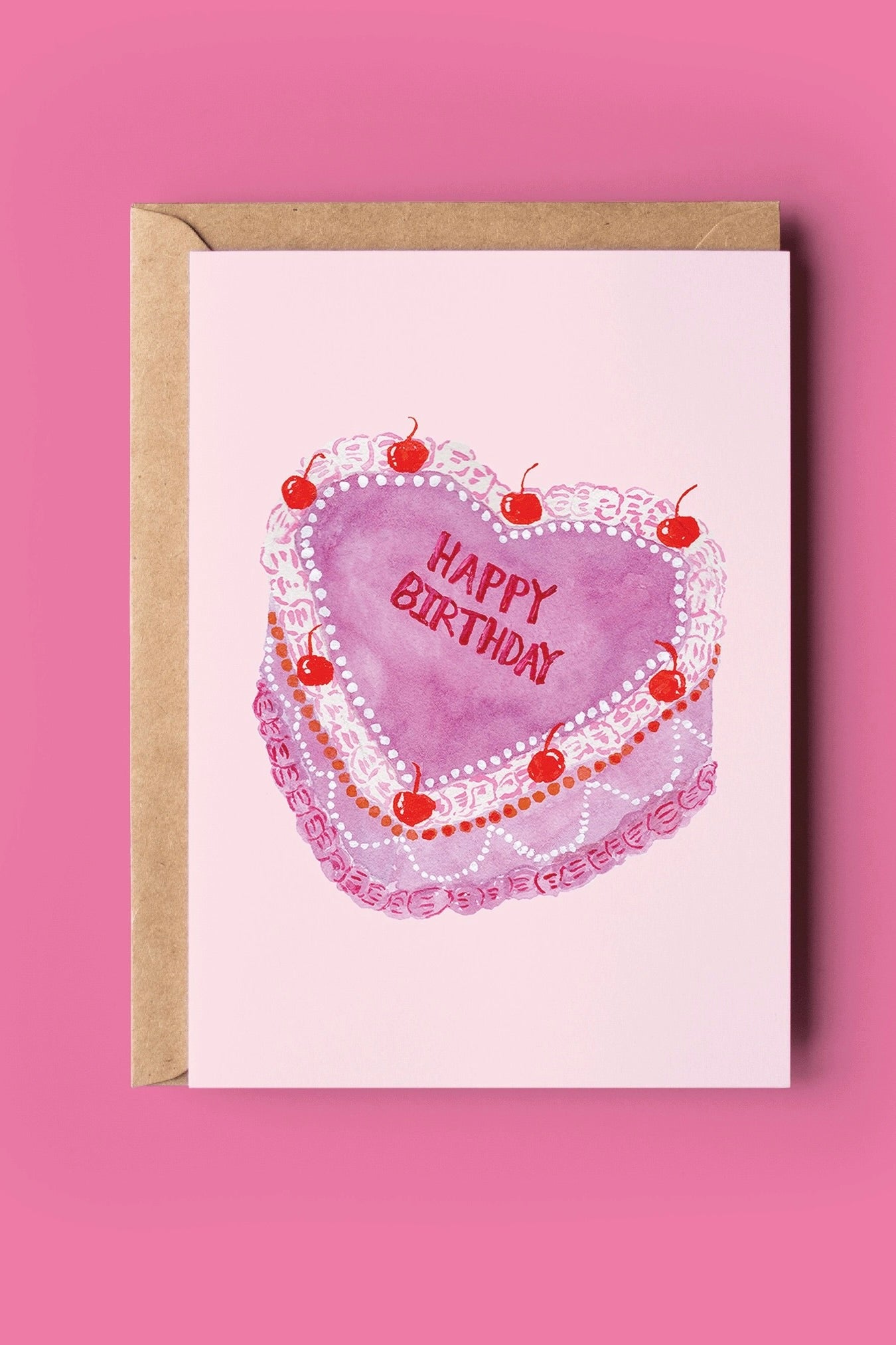 A7 greeting card with birthday cake original artwork by artist