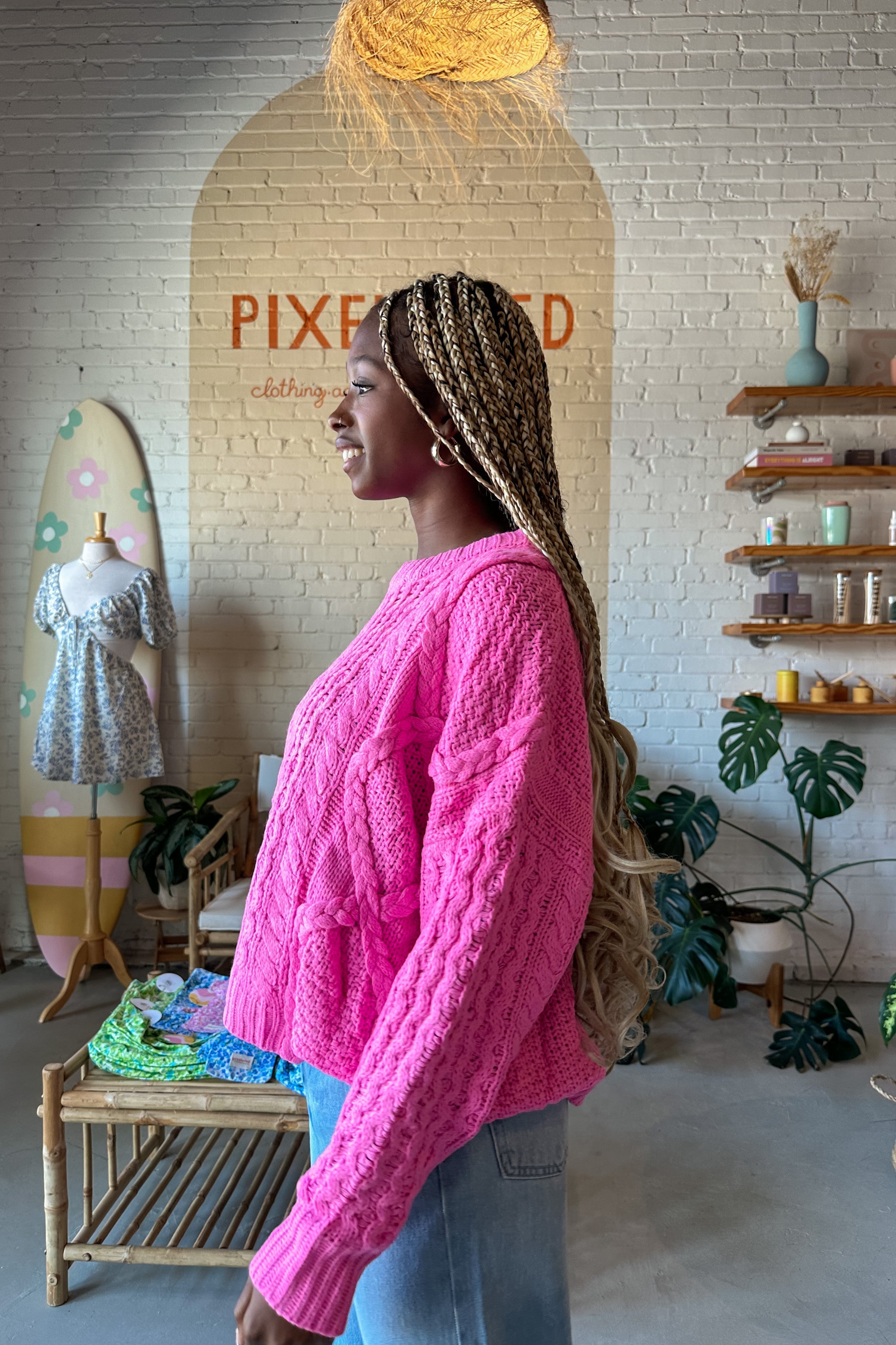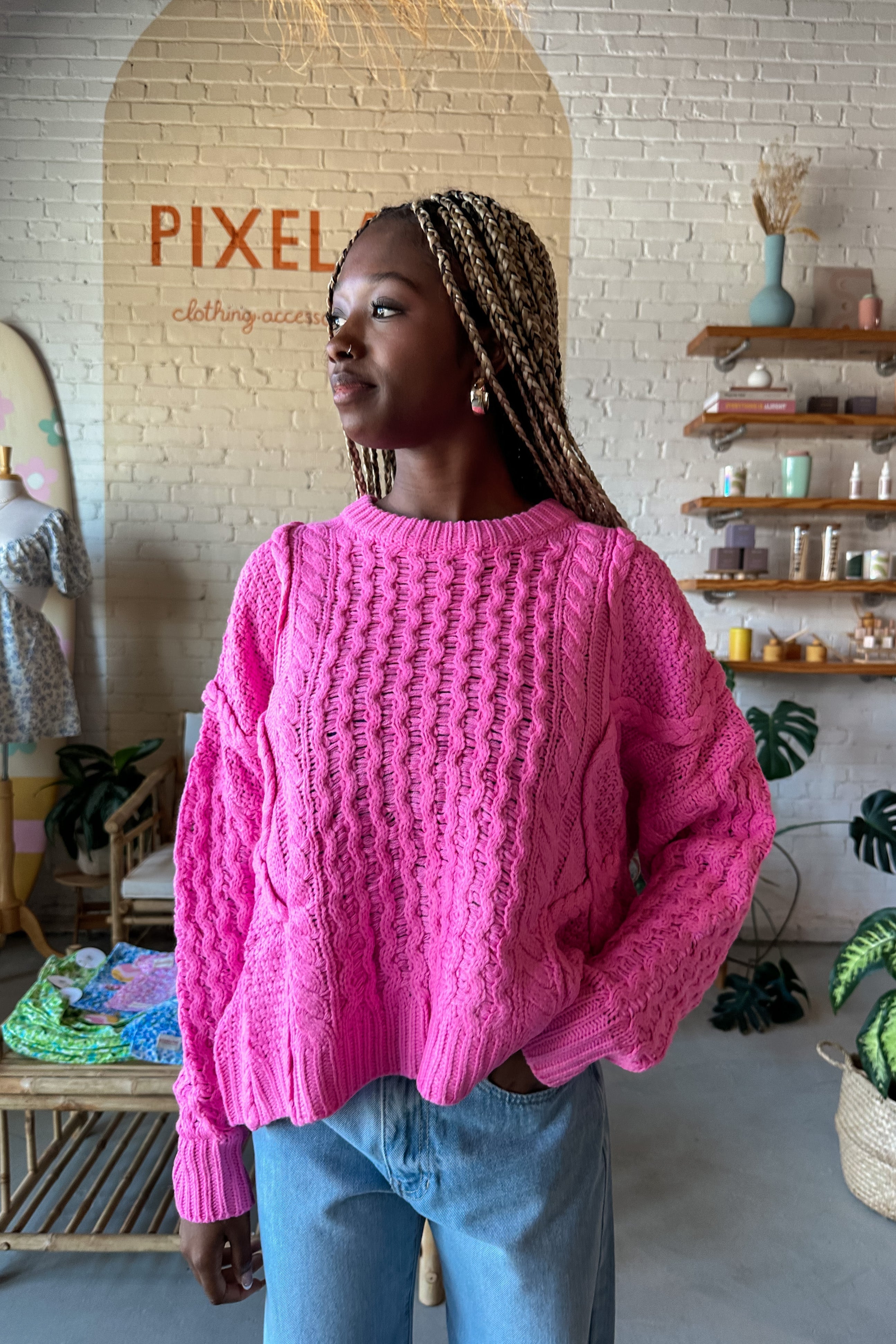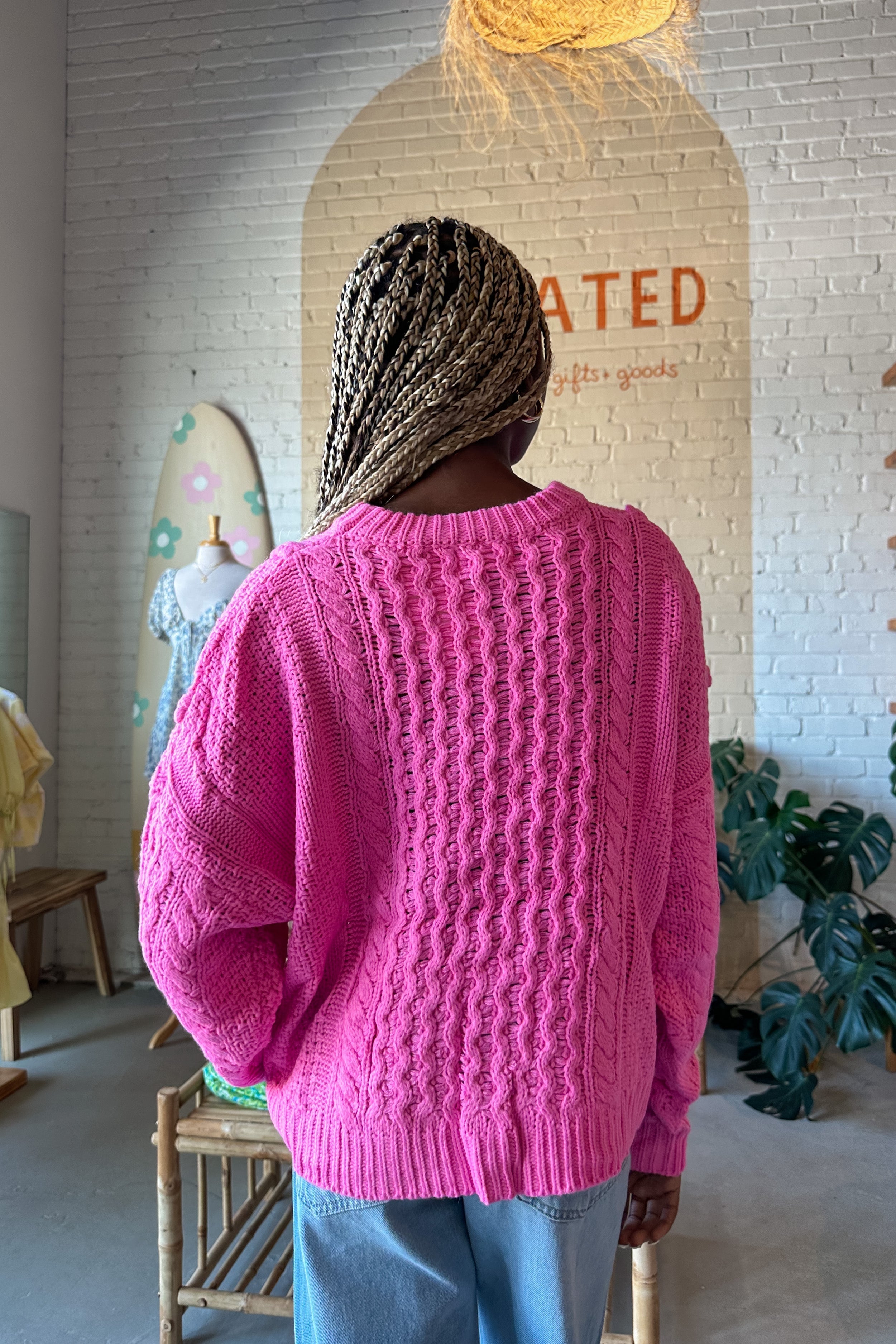 Quinn Cable Knit Sweater in Hot Pink | Restocked