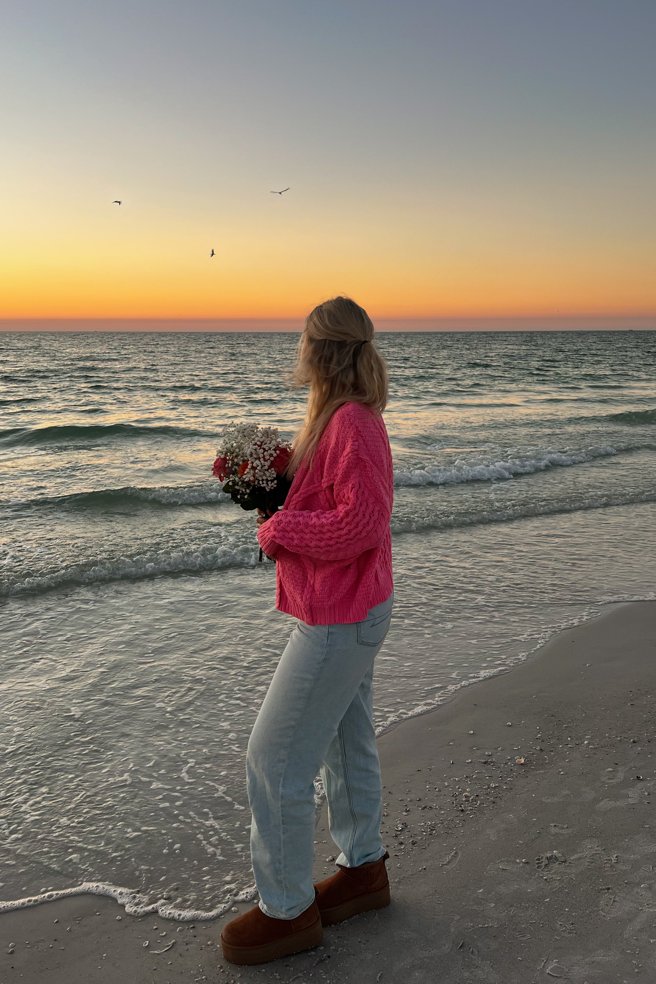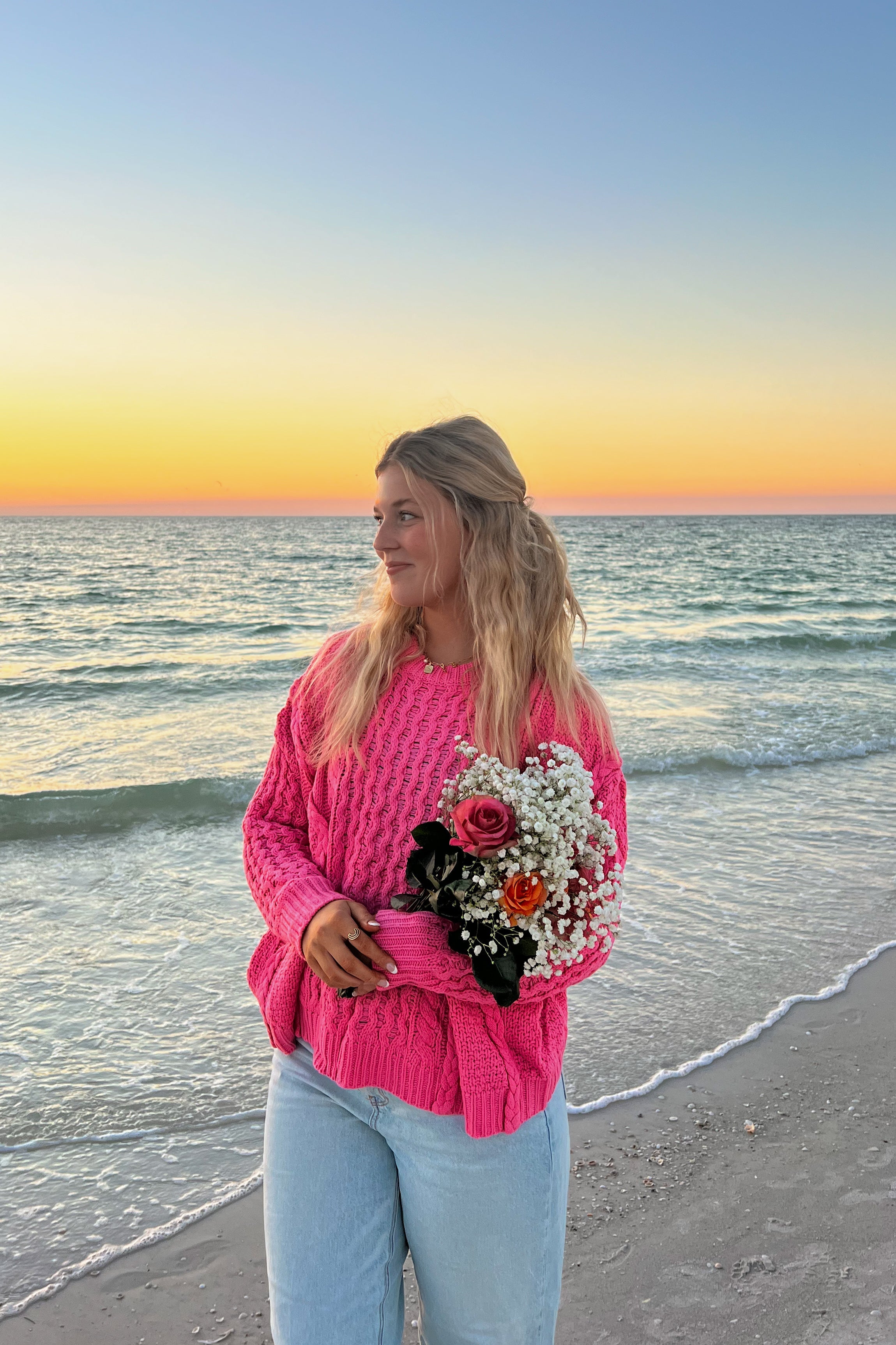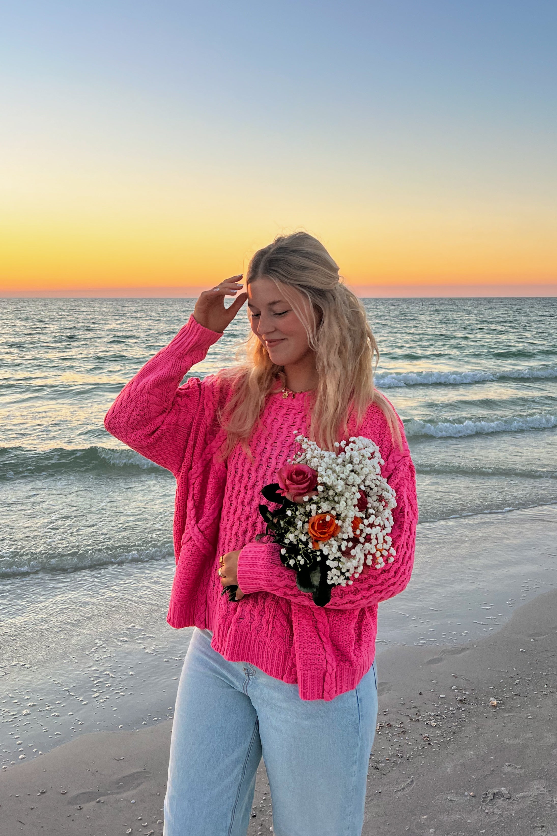 Quinn Cable Knit Sweater in Hot Pink | Restocked