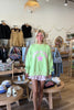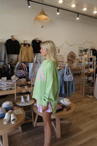 Green, graphic embroidered sweatshirt with crew neckline and fleece lining. Oversized and slightly cropped.