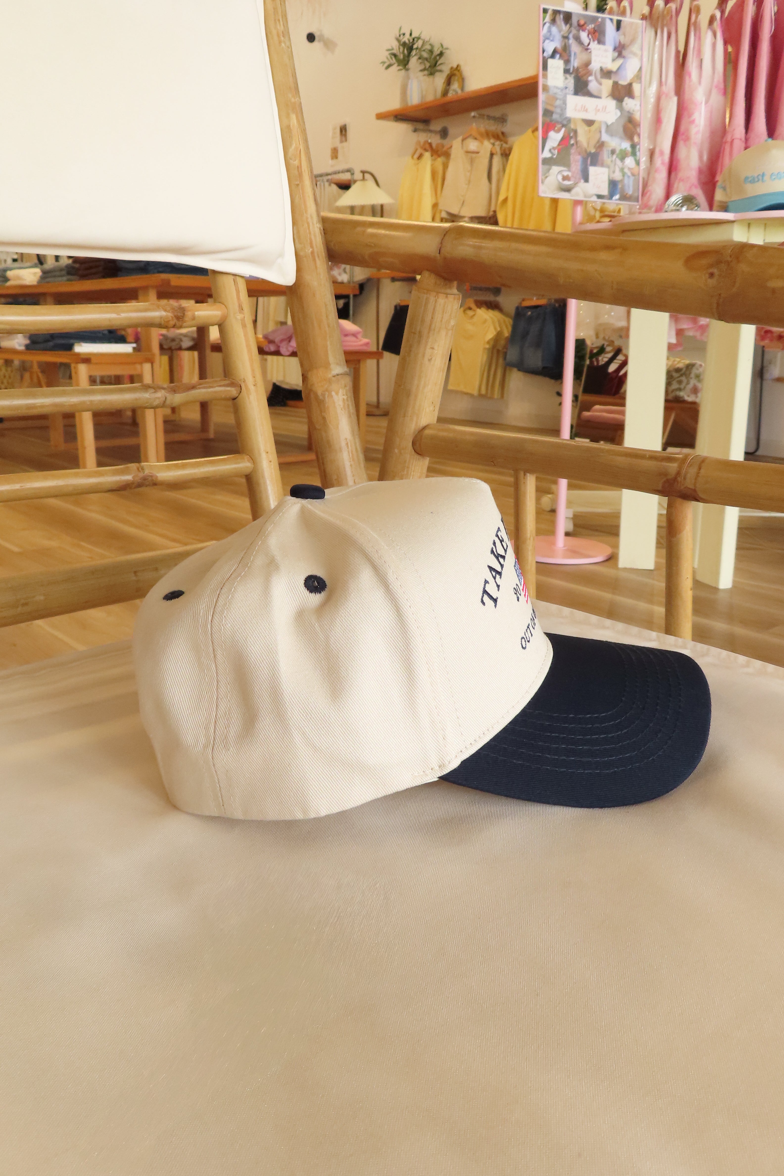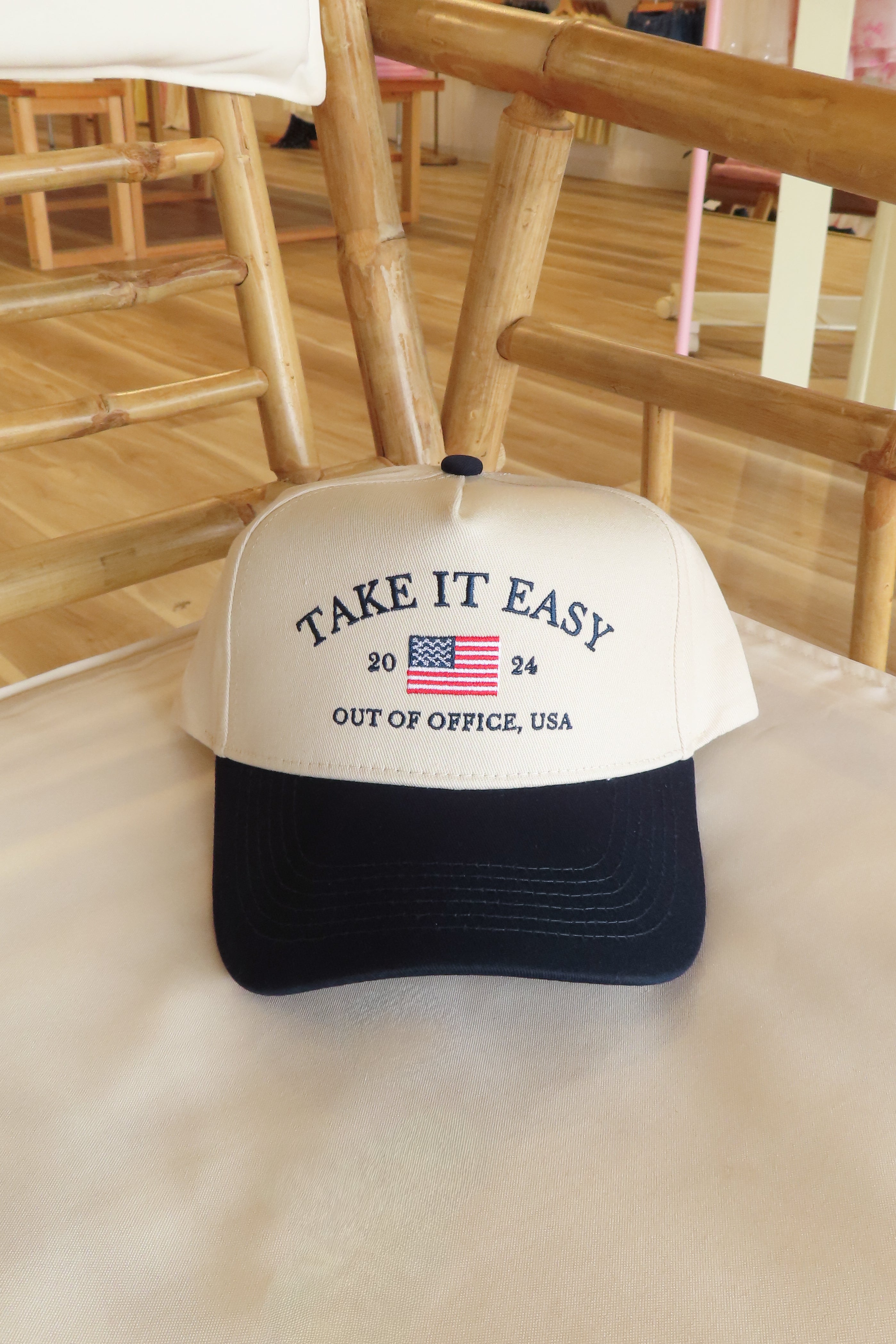 Take it easy” and flag embroidered vintage trucker hat with adjustable snapback