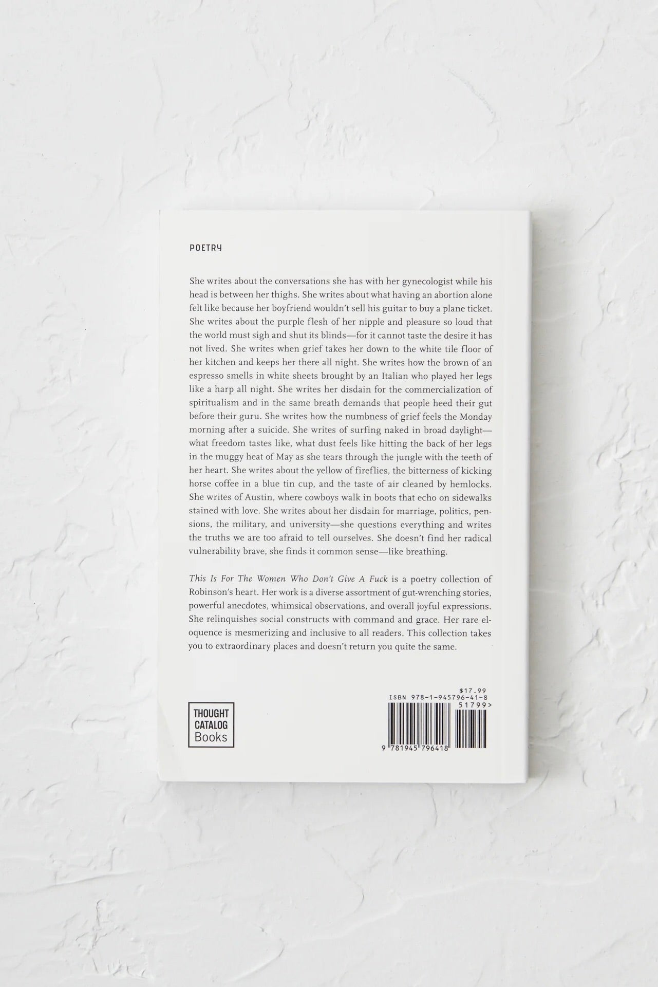 A poetry collection of Robinson's heart. Her work is a diverse assortment of gut-wrenching stories, powerful anecdotes, whimsical observations, and overall joyful expressions. She relinquishes social constructs with command and grace. Her rare eloquence is mesmerizing and inclusive to all readers. This collection takes you to extraordinary places and doesn't return you quite the same.
