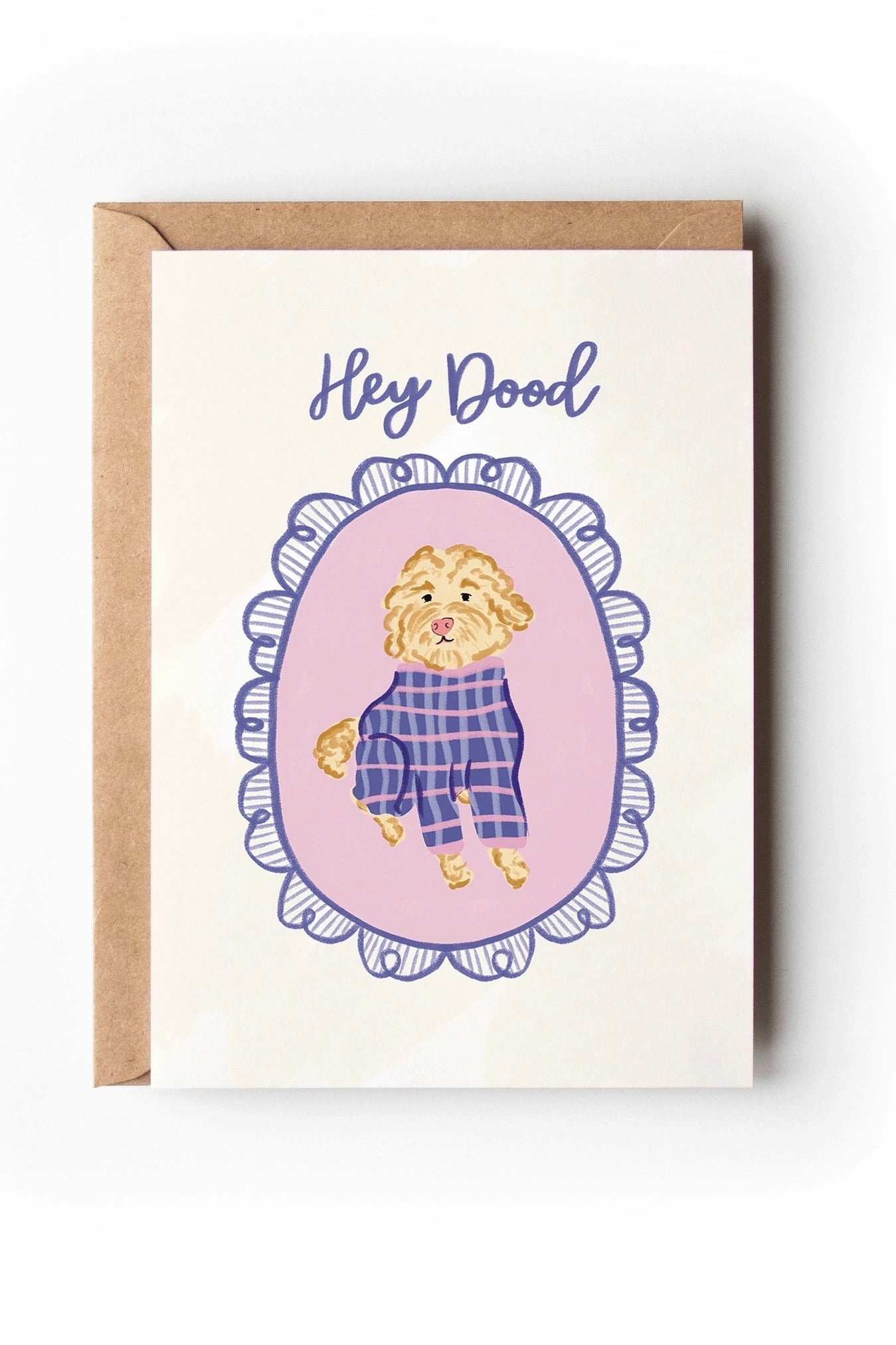 A7 greeting card with labradoodle dog in a sweater original artwork by artist
