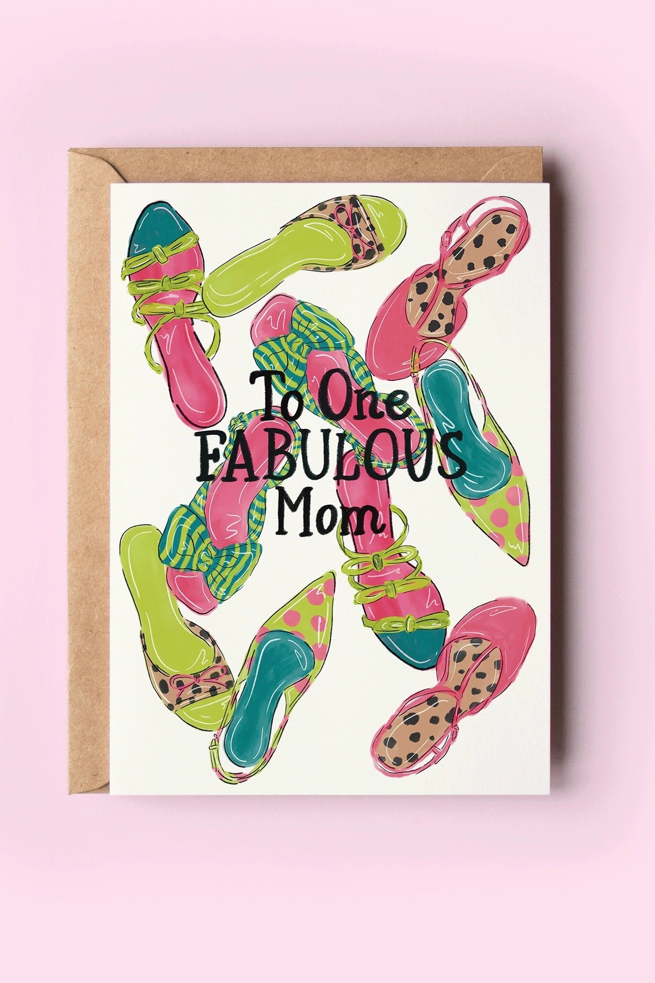A7 greeting card with colorful heels and sandals original artwork by artist