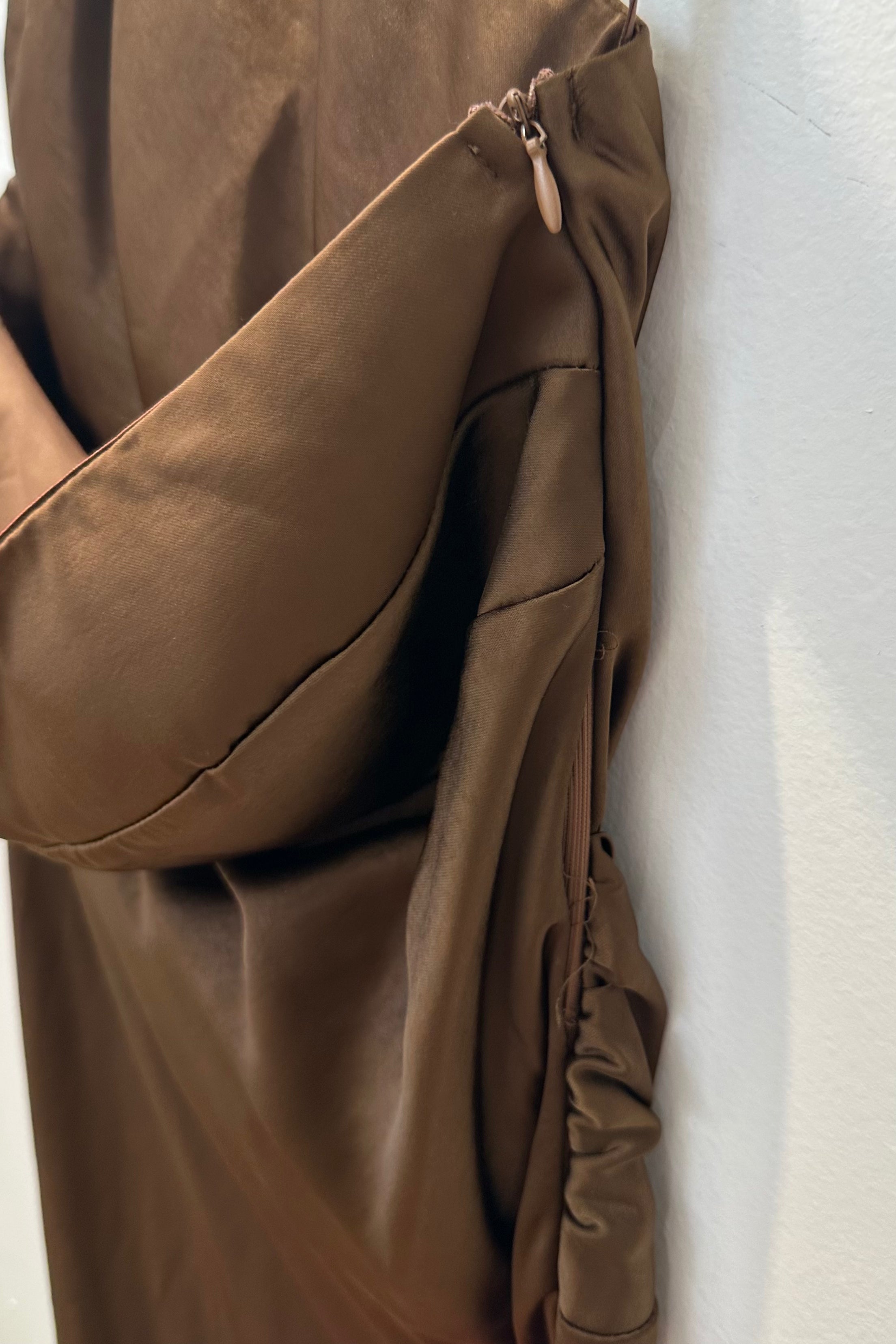 This item is discounted because it is slightly damaged due to moderate. There is a small hole in the fabric on the side of the dress near the zipper (pictures included in listing). Please feel free to reach out to us direct for any follow up questions regarding this item. This item is final sale.
