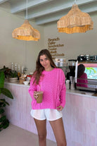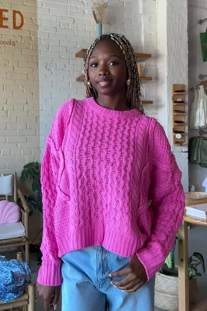 Quinn Cable Knit Sweater in Hot Pink | Restocked