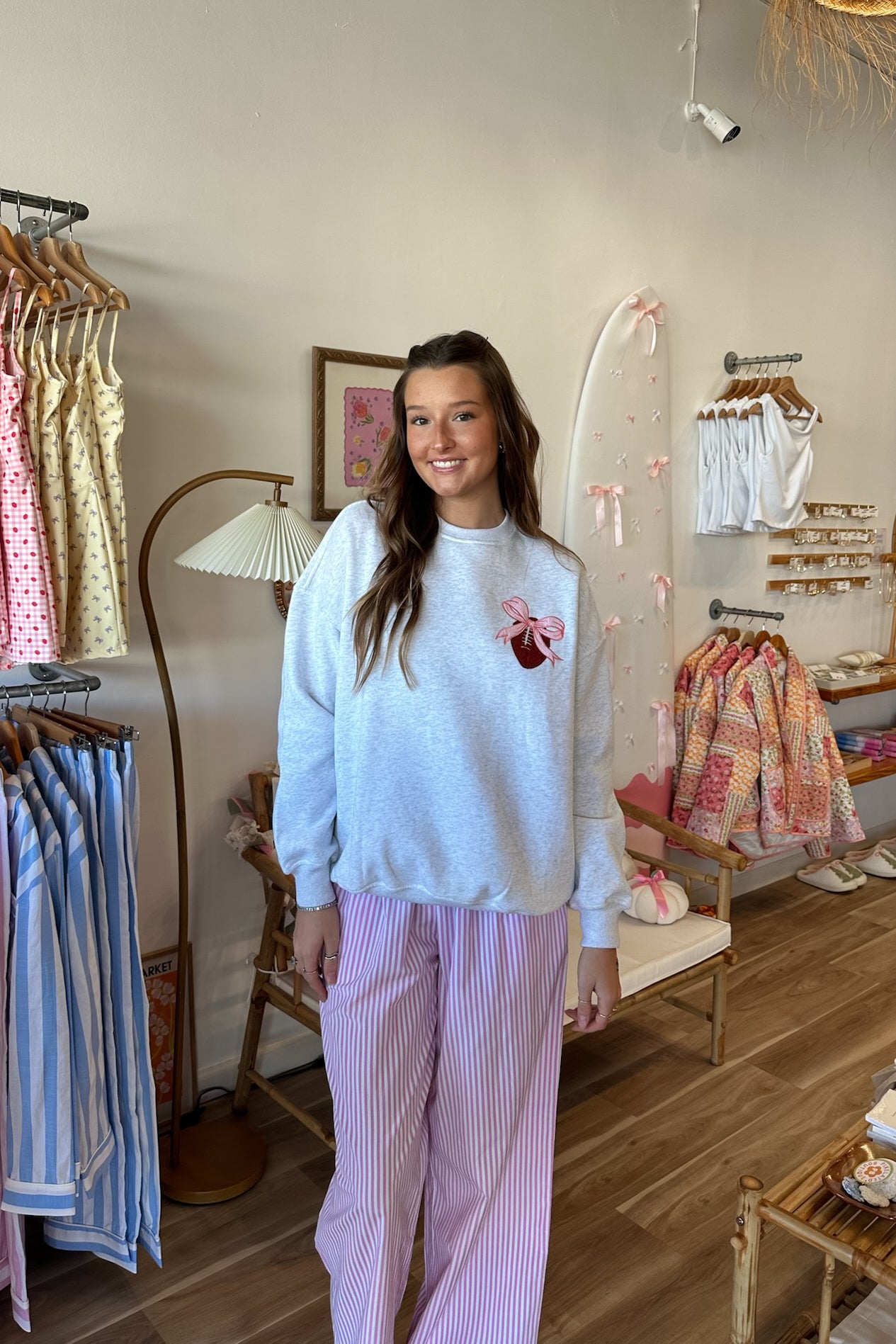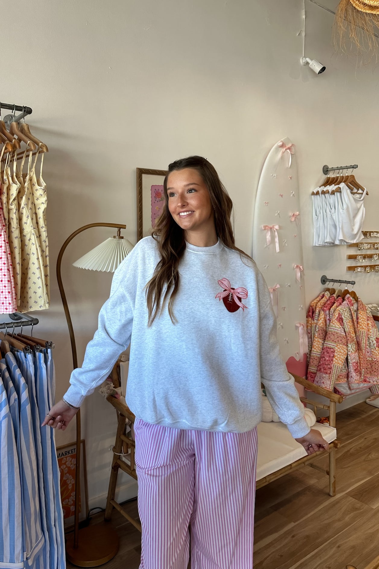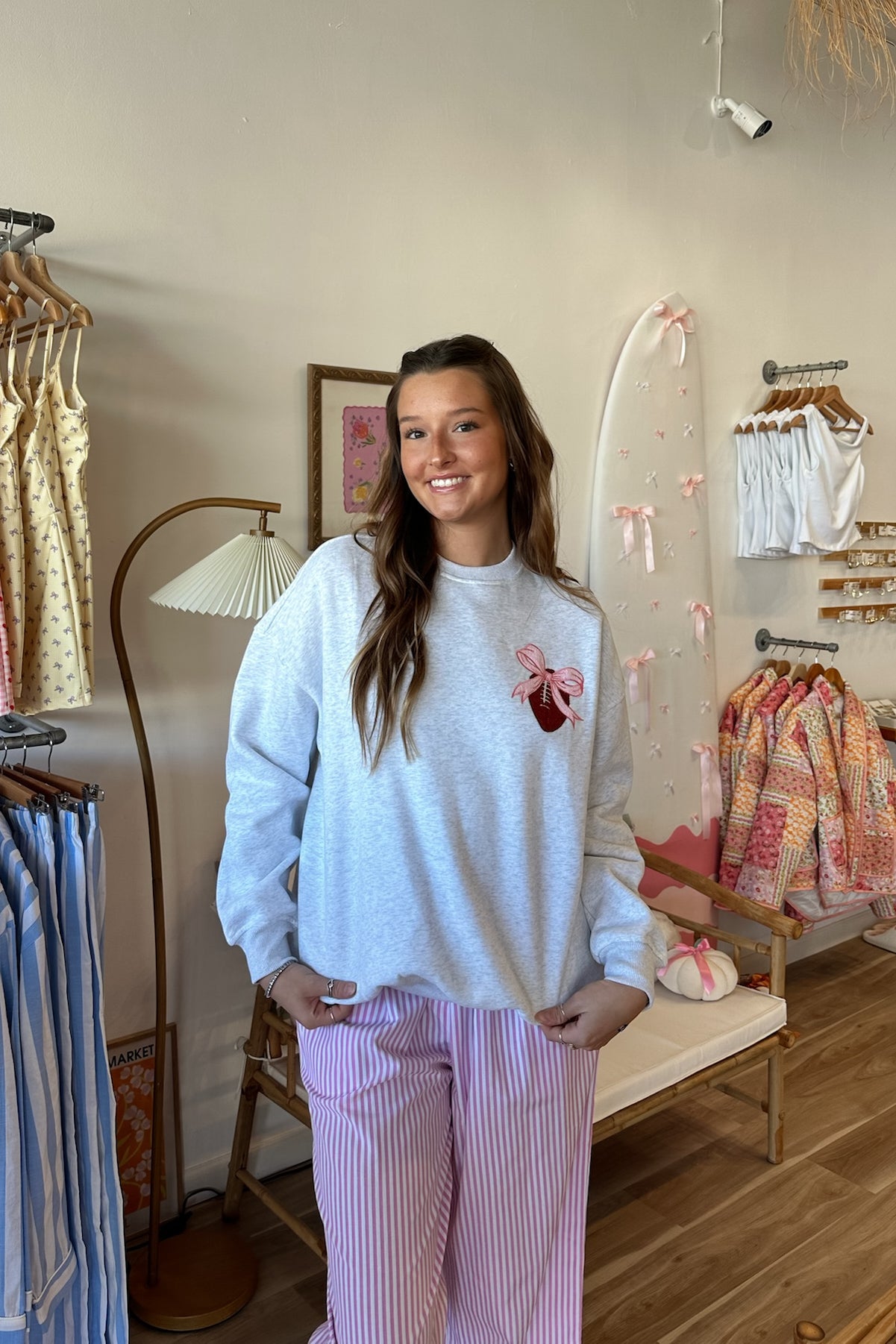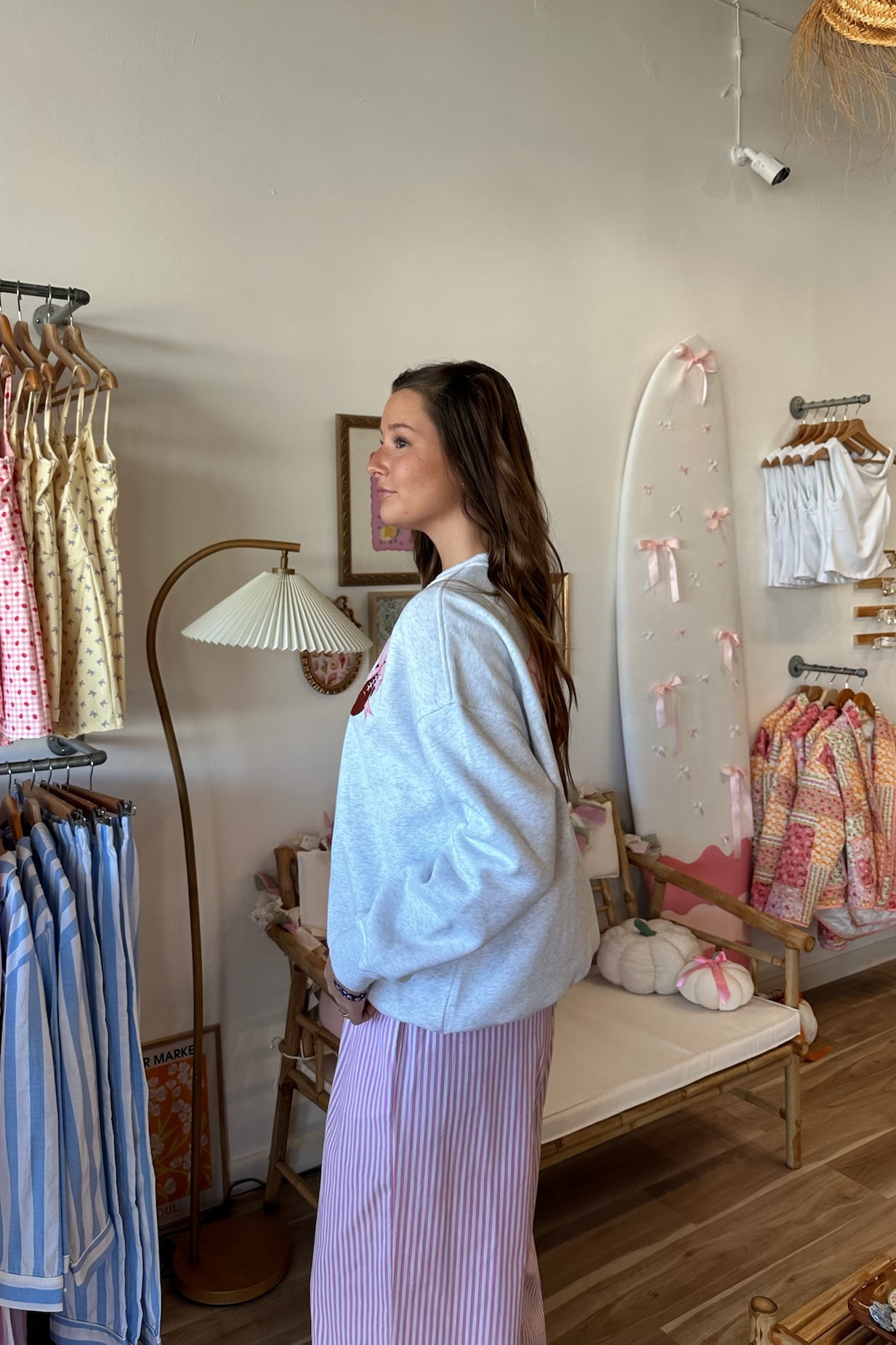 Gray, embroidered sweatshirt made with luxury paint, ink, and thread. Cozy plush material on the inside. Size up for an oversized fit.
