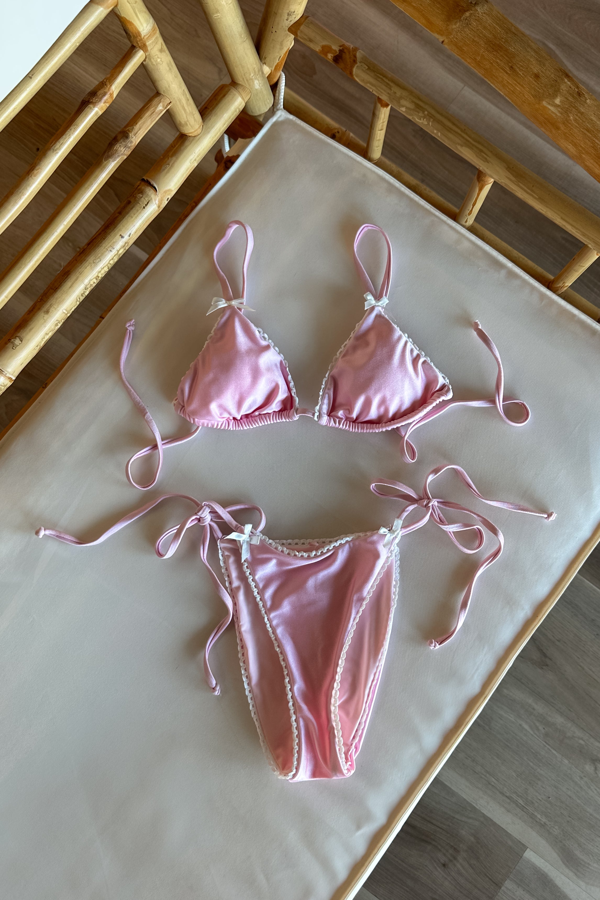 Dippin' Daisy's, triangle bikini top with lace trim, mini bows, tie back, and adjustable straps