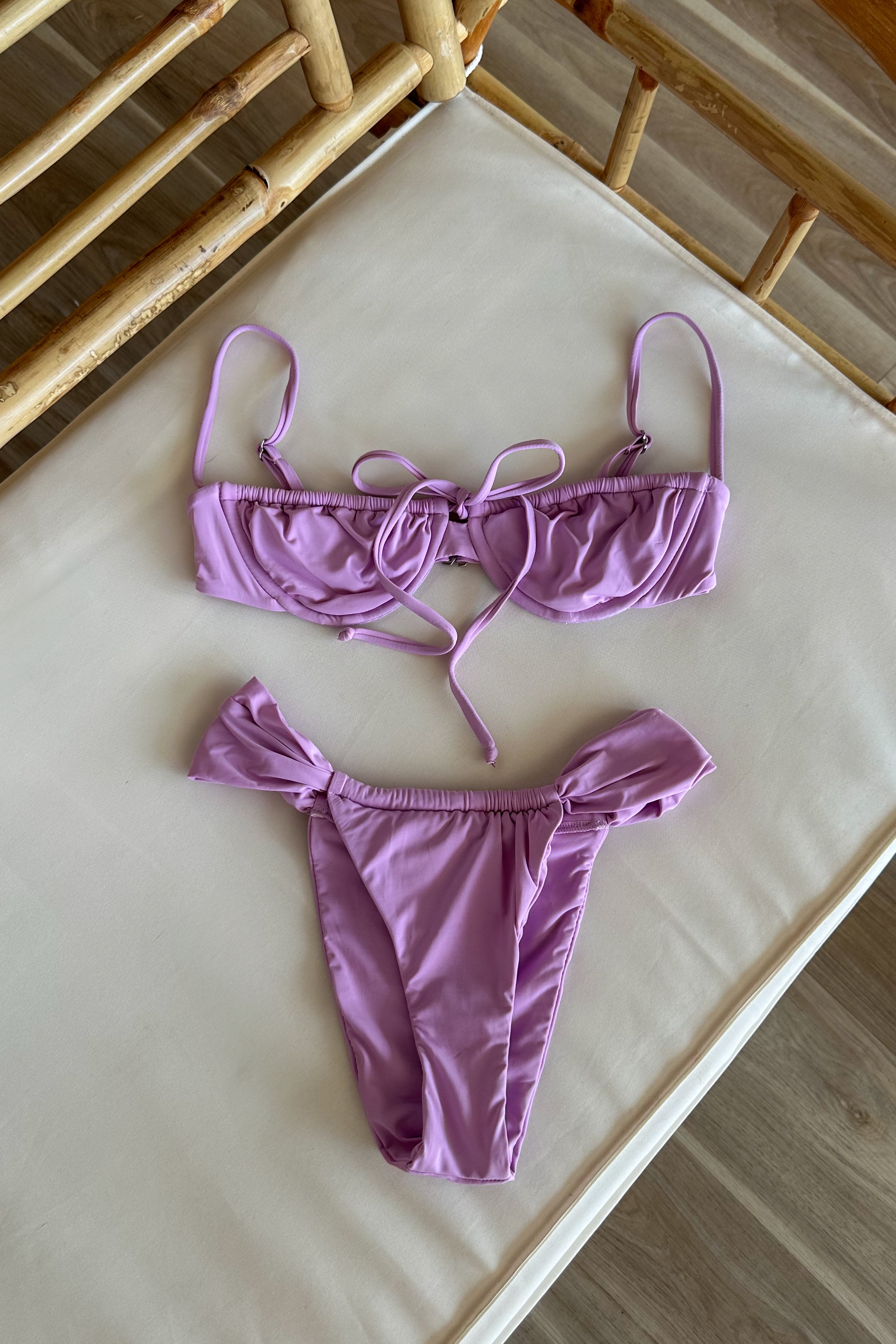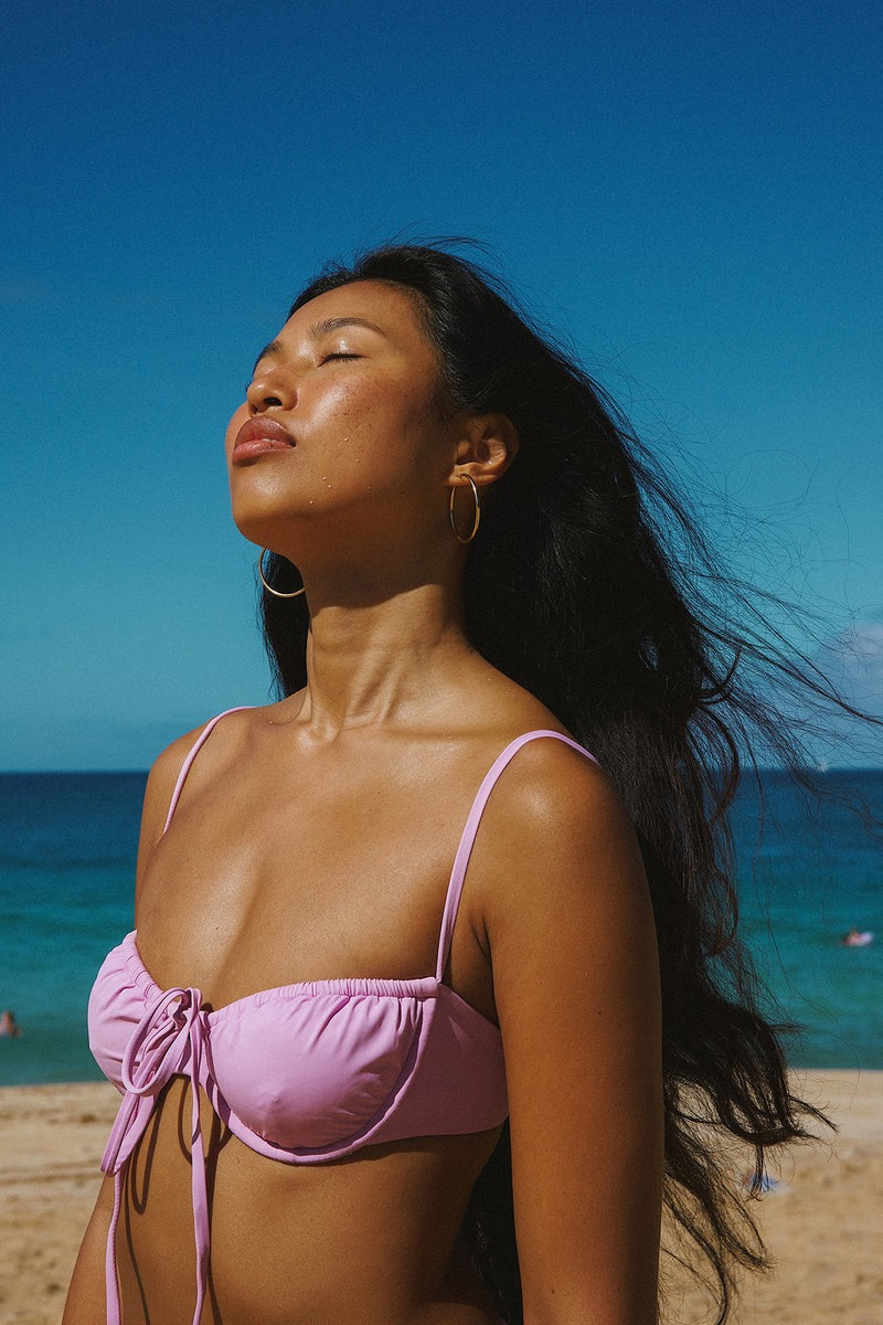 Dippin' Daisy's, underwire bikini top with bustier-style bra, adjustable straps, front tie, and back hook closure