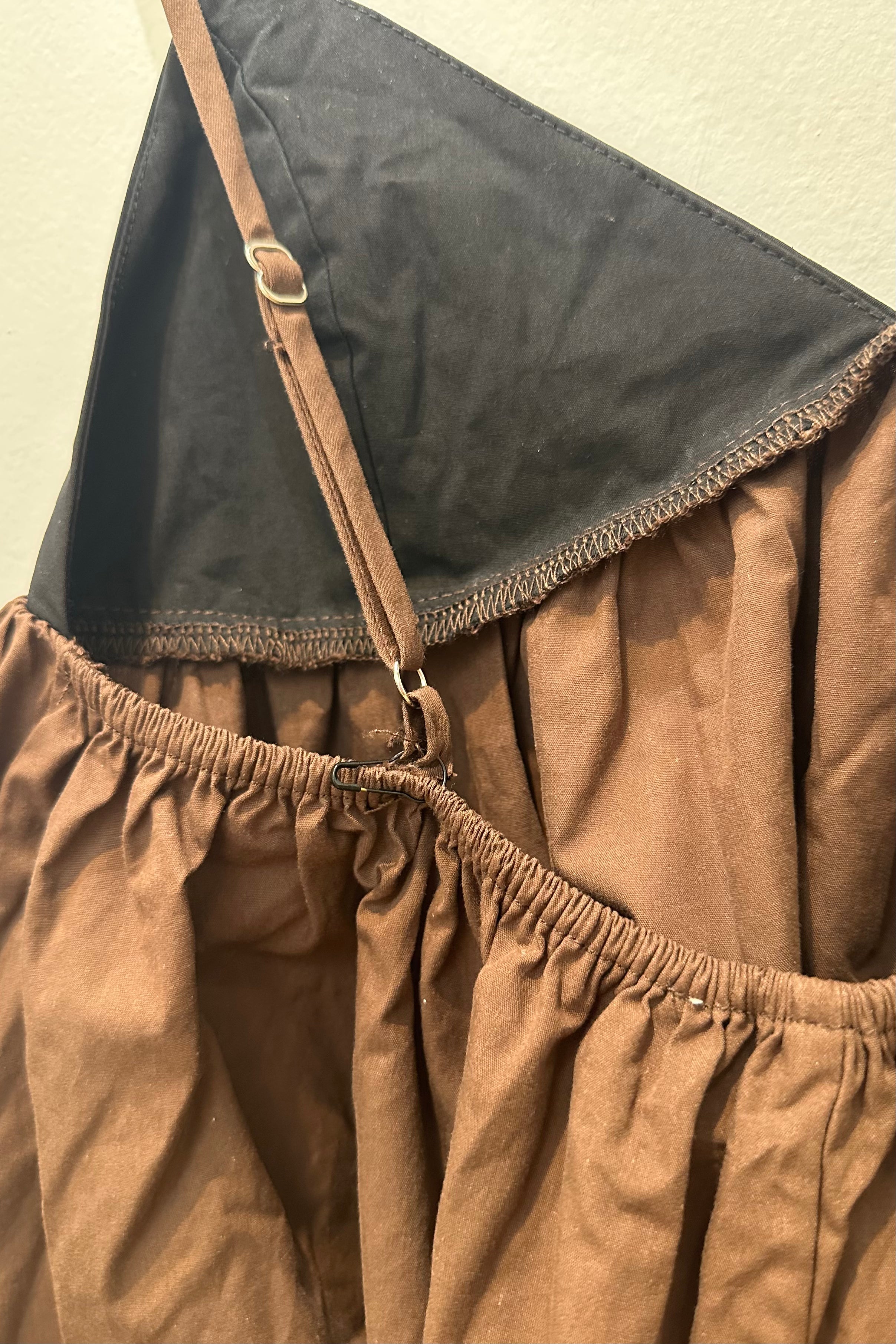 Brown, color block cami top V-neckline, adjustable spaghetti straps, flared hem