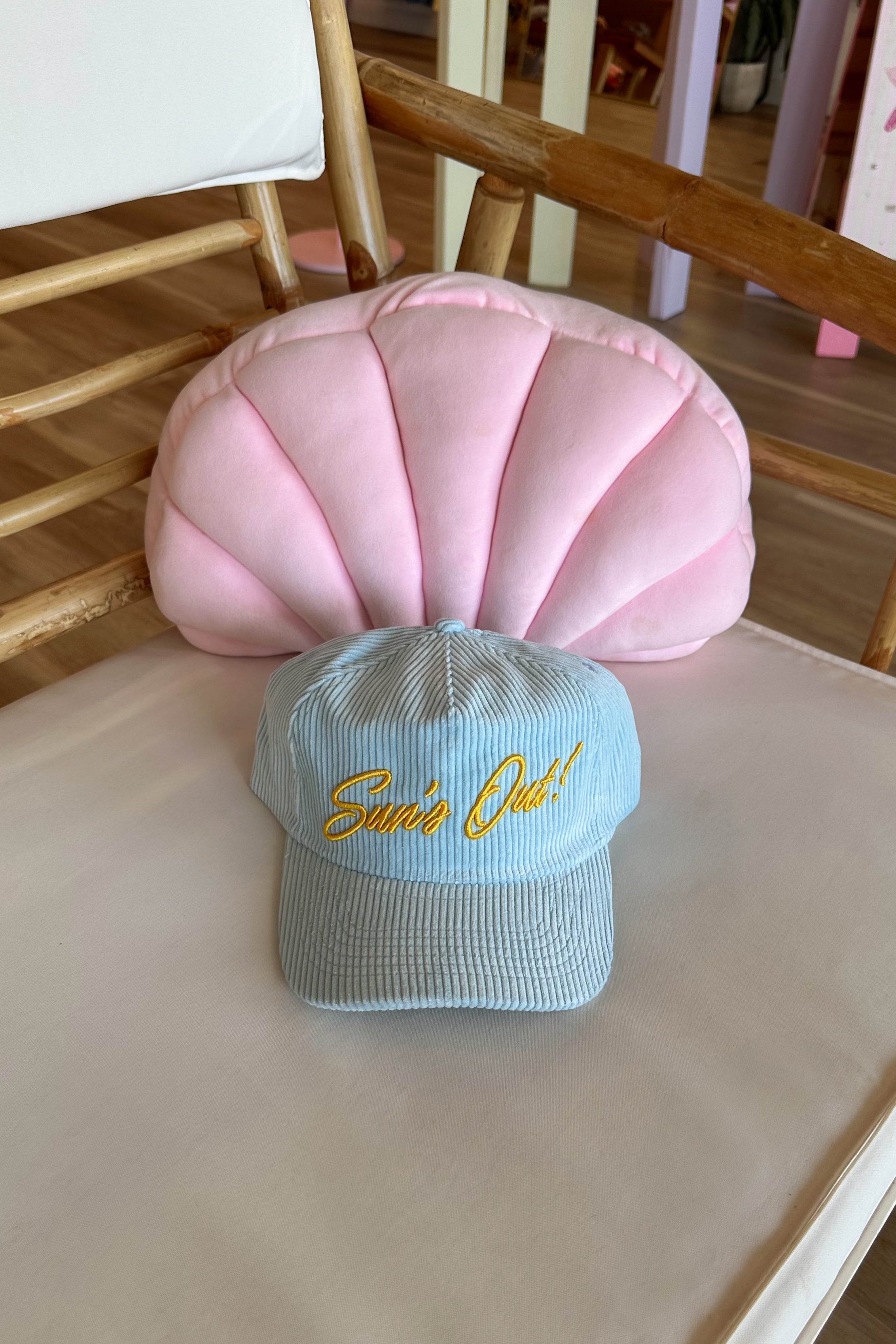 “Sun's Out Buns Out” embroidered corduroy trucker hat with adjustable snapback