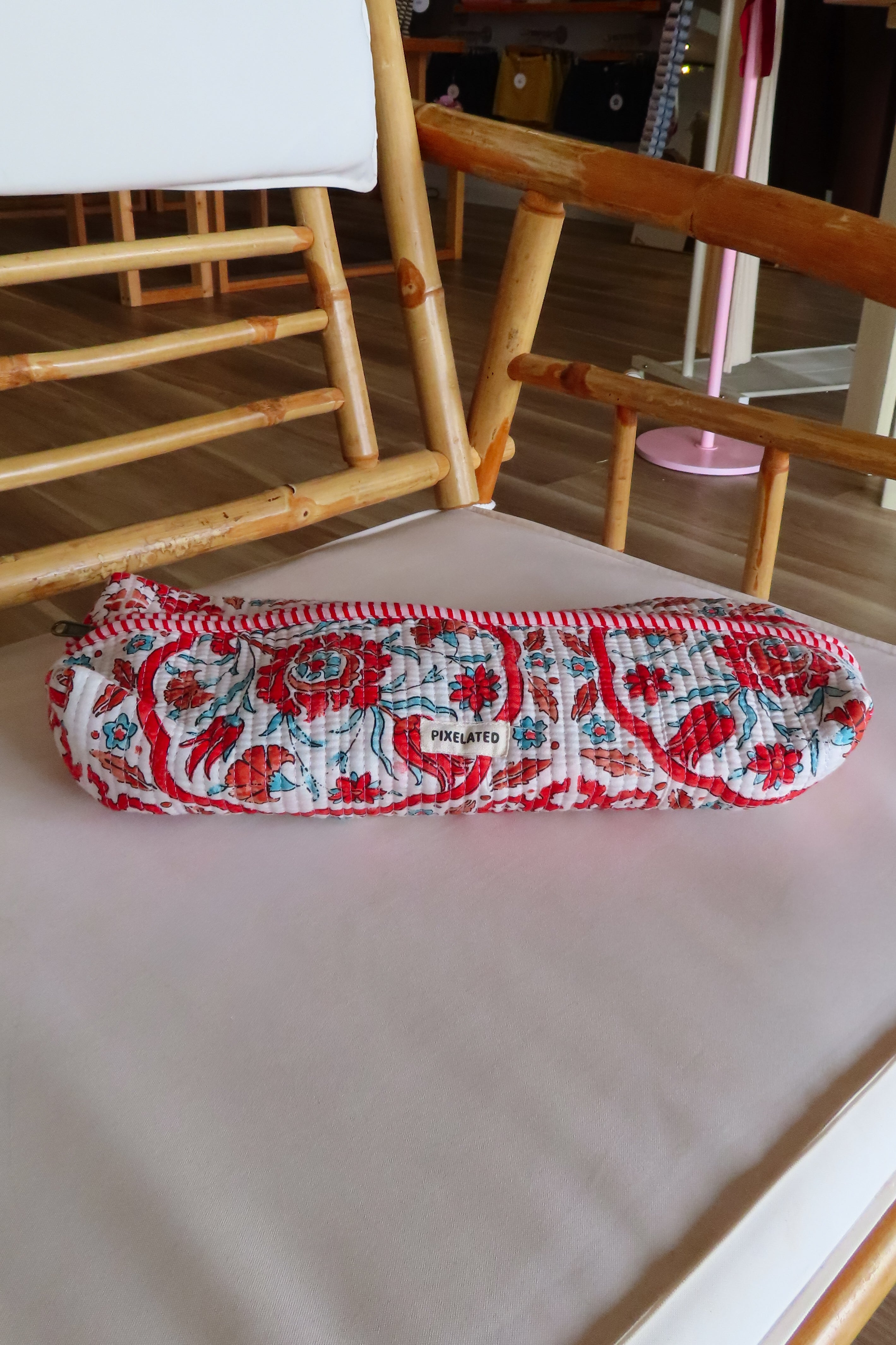 Handmade quilted hair tool pouch with zipper closure